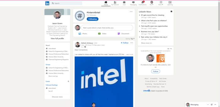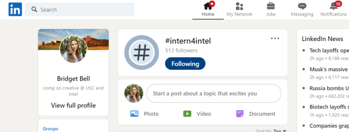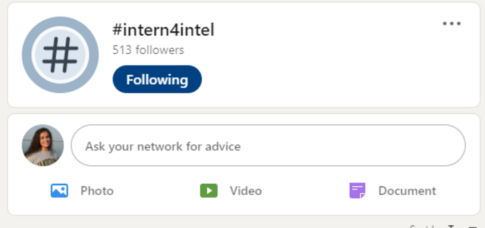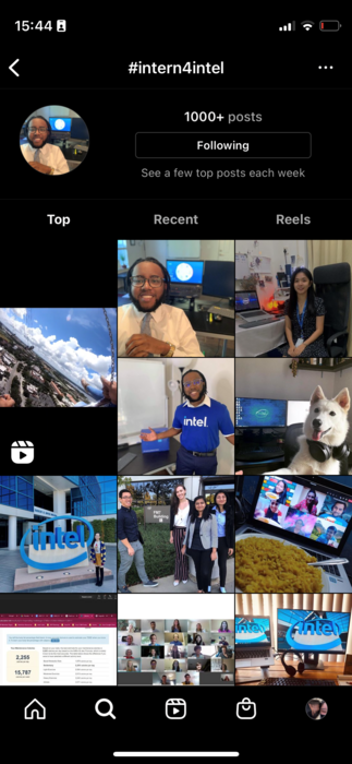 Upload a screenshot showing that you follow #intern4intel on any social media platform