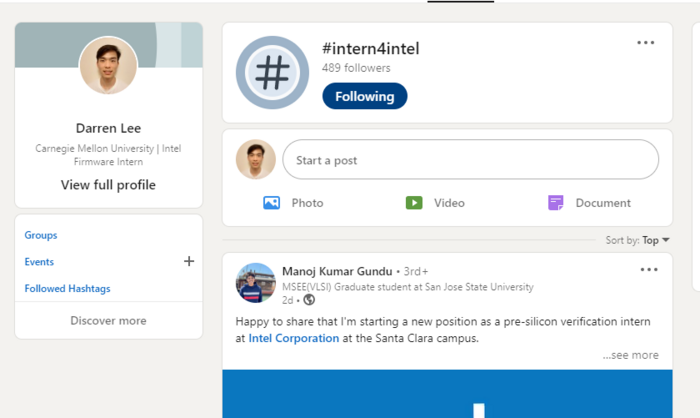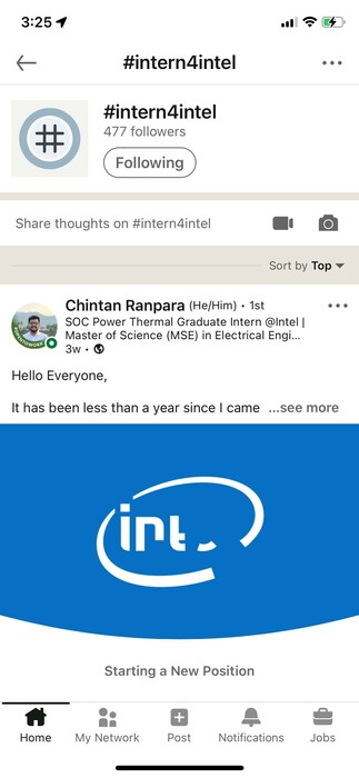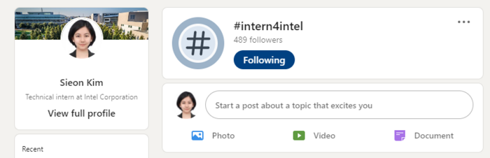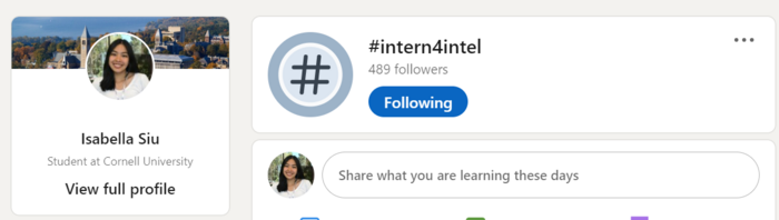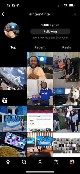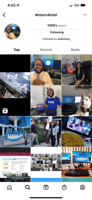 Upload a screenshot showing that you follow #intern4intel on any social media platform