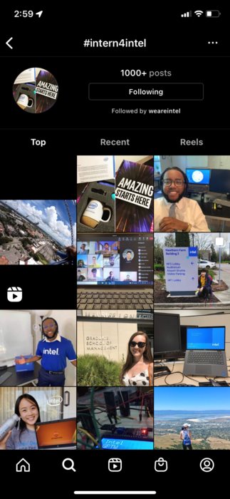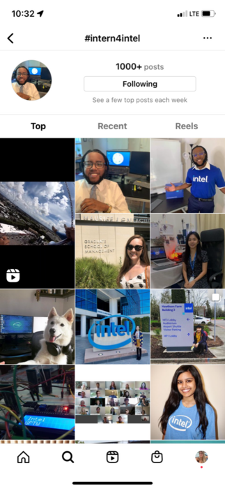 Follow #intern4intel on social media