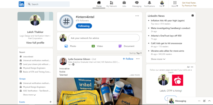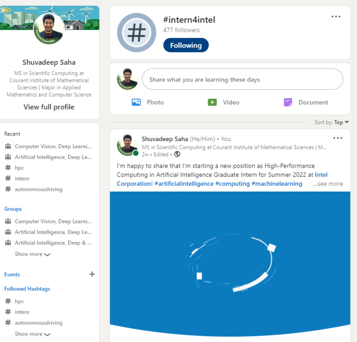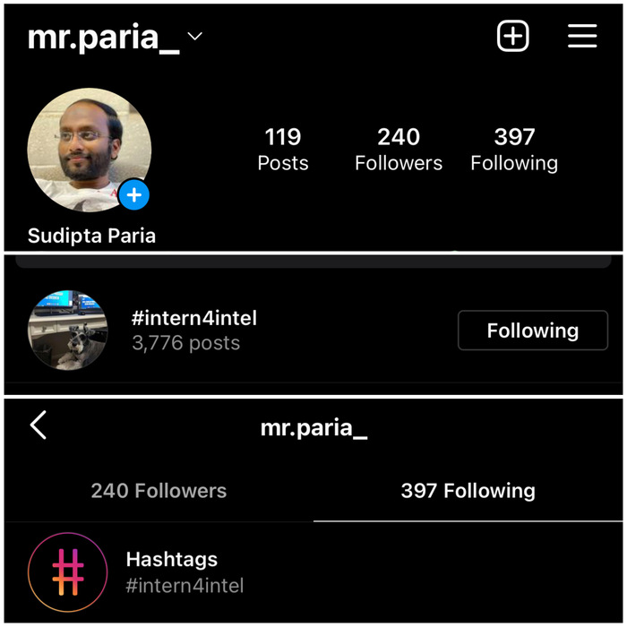 Upload a screenshot showing that you follow #intern4intel on any social media platform