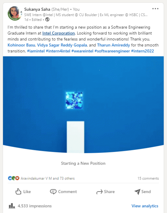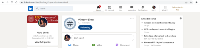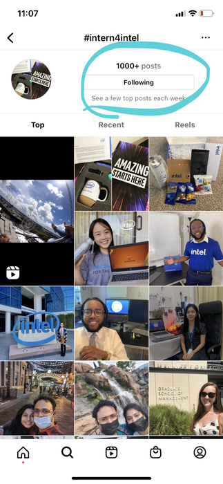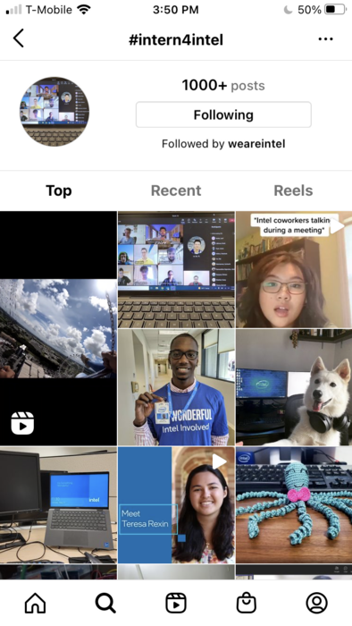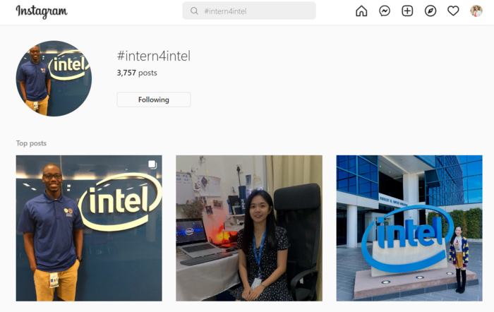 Upload a screenshot showing that you follow #intern4intel on any social media platform
