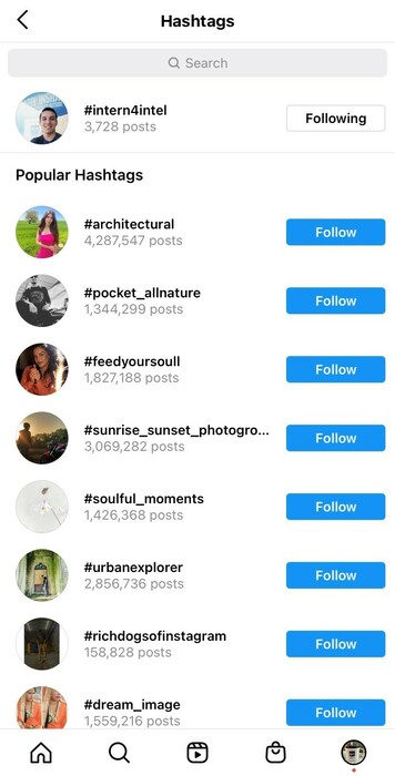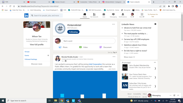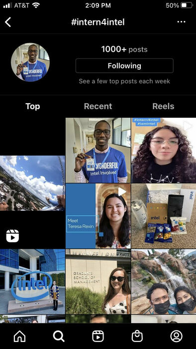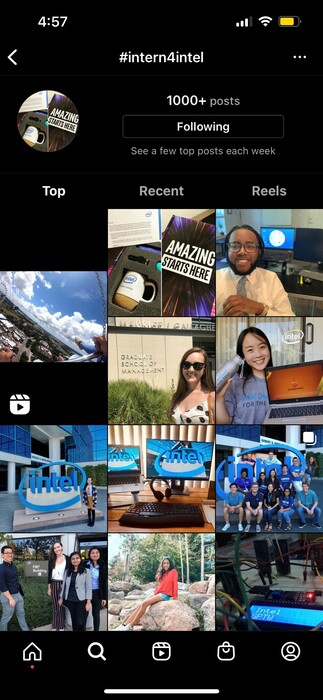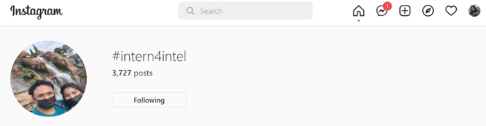 Upload a screenshot showing that you follow #intern4intel on any social media platform