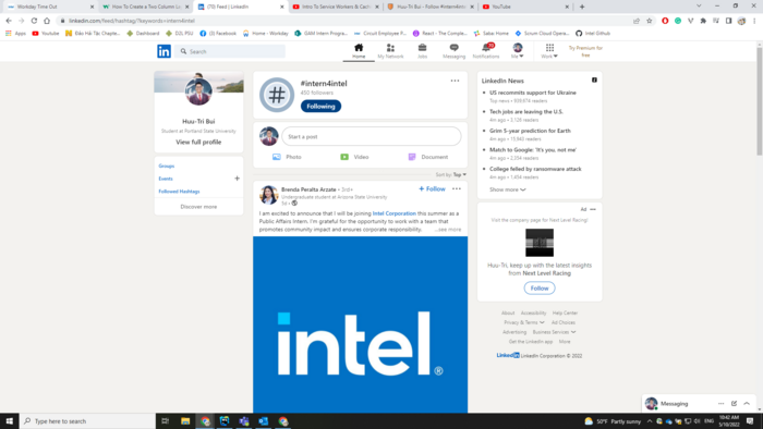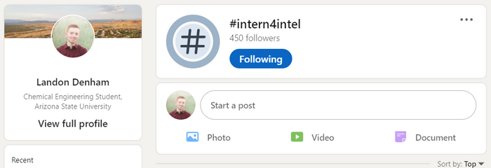 Following intern4intel on linkedin