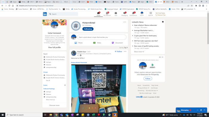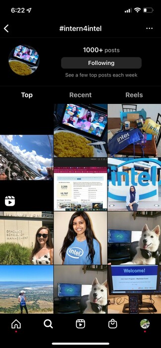 Upload a screenshot showing that you follow #intern4intel on any social media platform