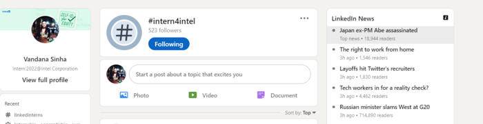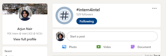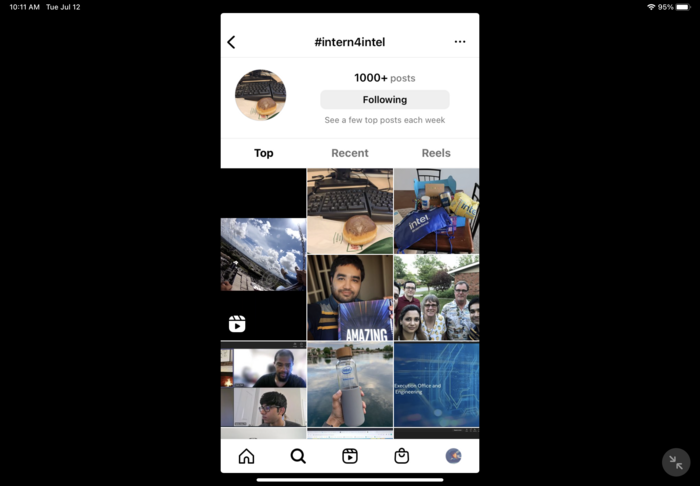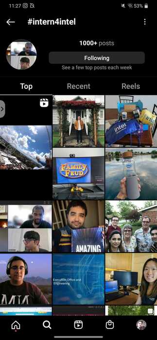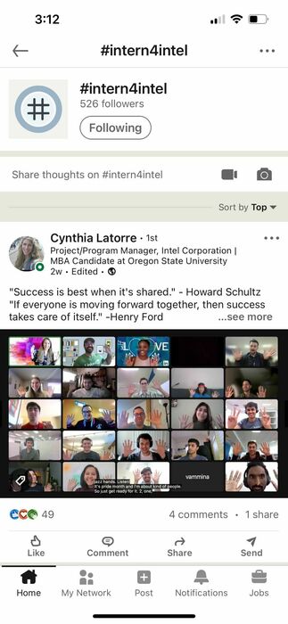 Upload a screenshot showing that you follow #intern4intel on any social media platform