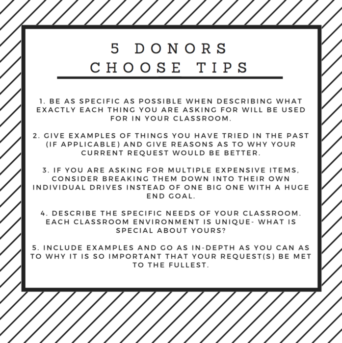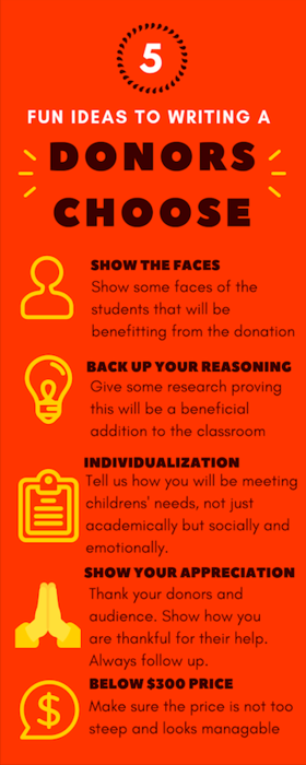 3. Don't ask for too much. I have seen some classrooms that are requesting everything but the kitchen sink, and it seems somewhat greedy.