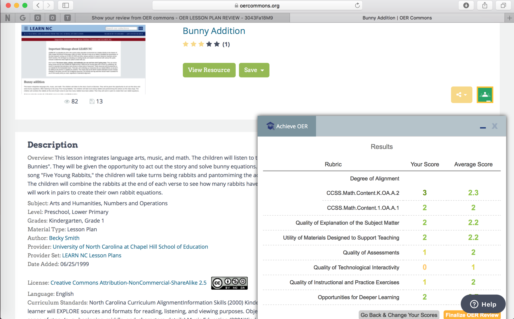 Show your review from OER commons