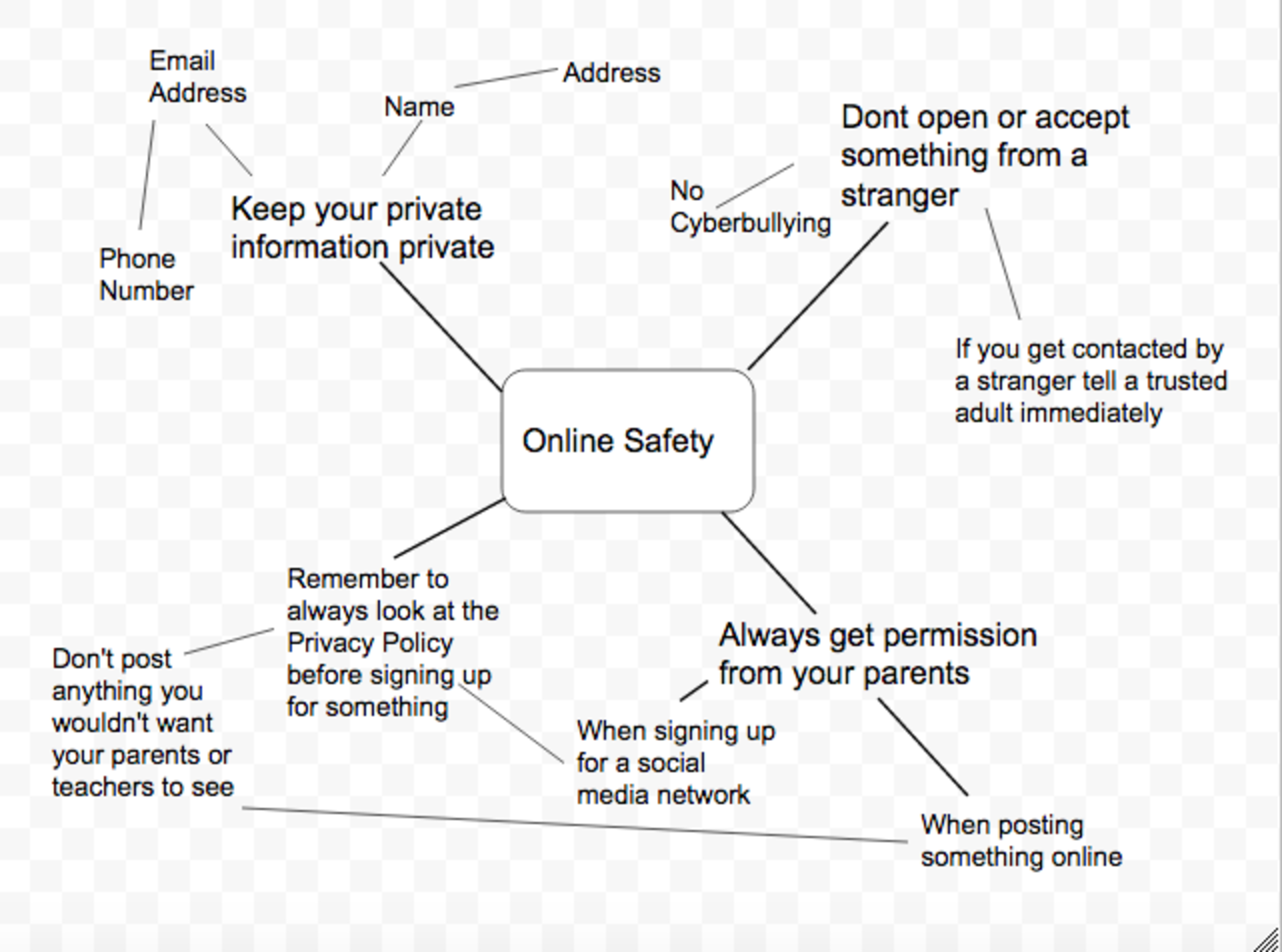 Mind map about online safety