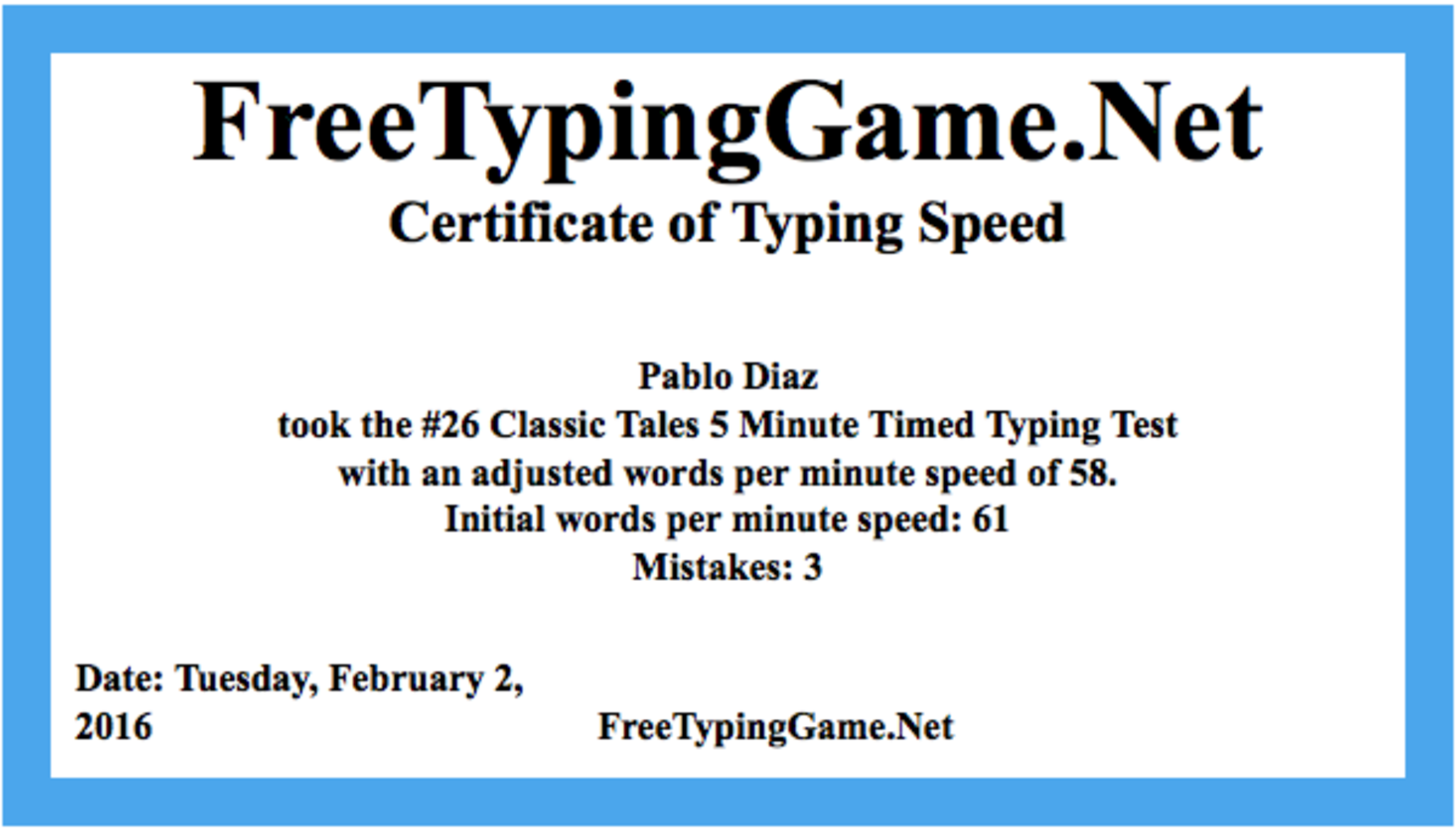 Typing Certificate