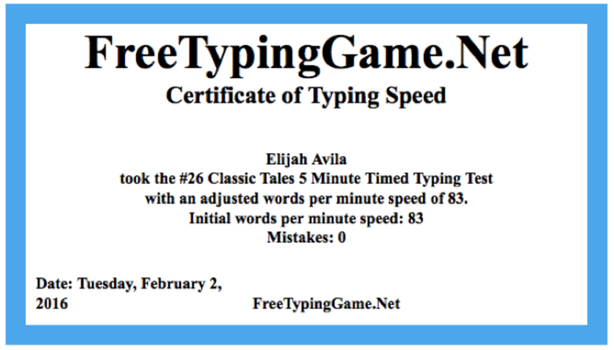 Typing Certificate