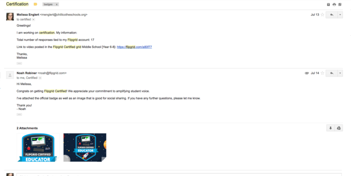 Complete 3 steps to get certified! Upload a screenshot of your email confirmation of certification. Learn more at http://blog.flipgrid.com/news/2017/6/19/flipgridcertified