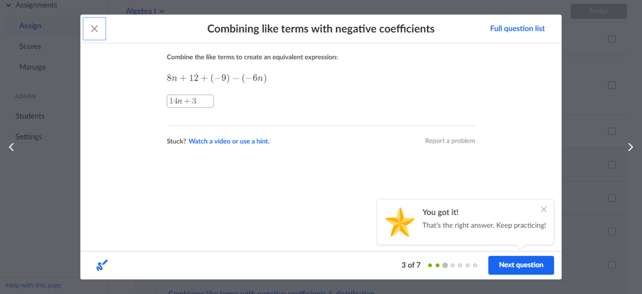 using student view on Khan Academy to practice a lesson before assigning it to my students.
