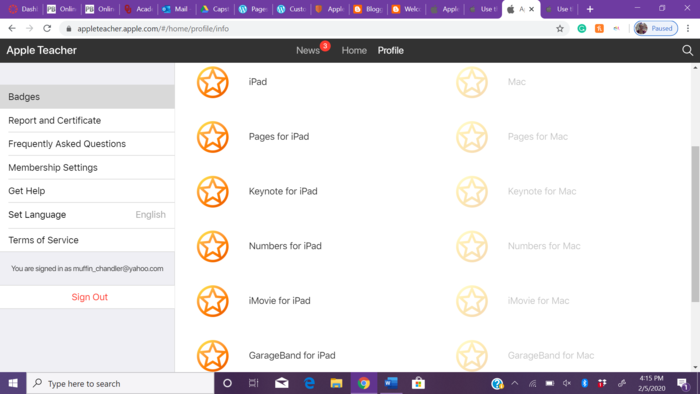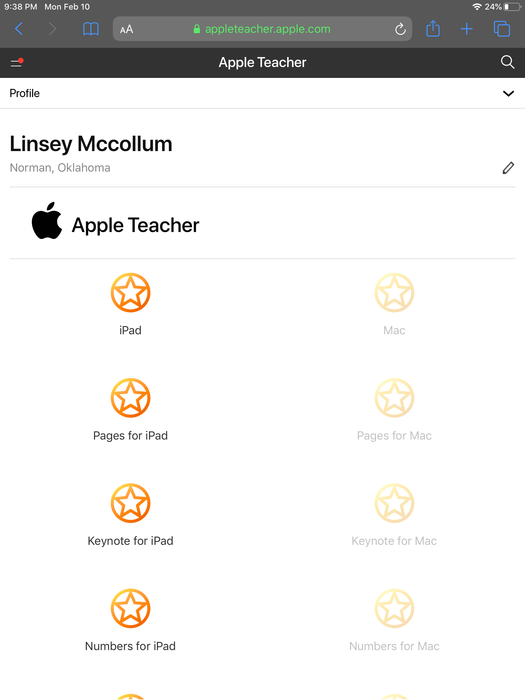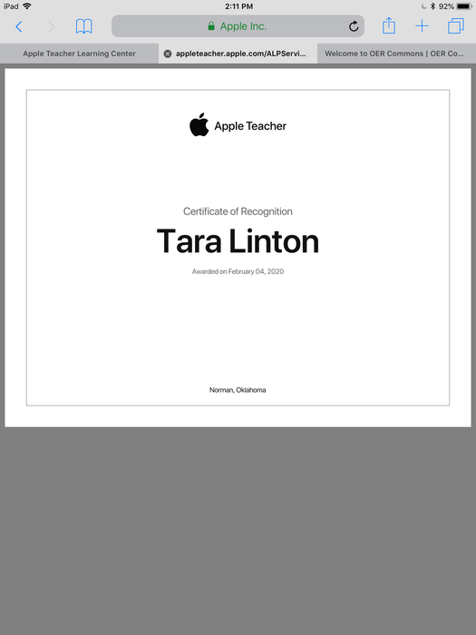 Screen shot confirming you completed all the steps to earn the iPad certification. You may need more than one screen shot.