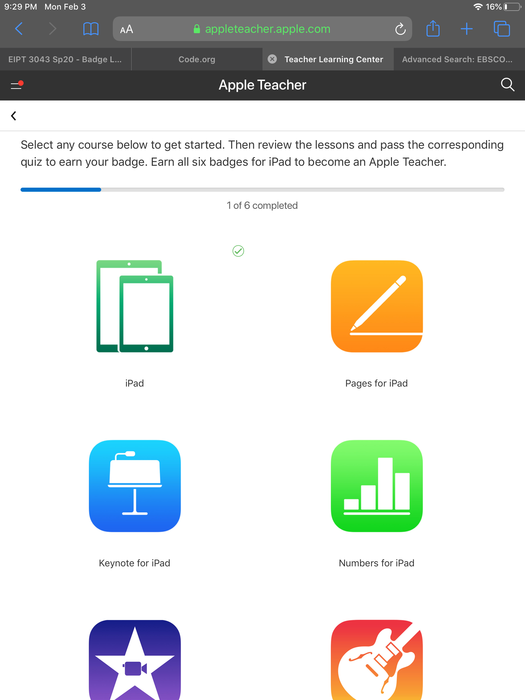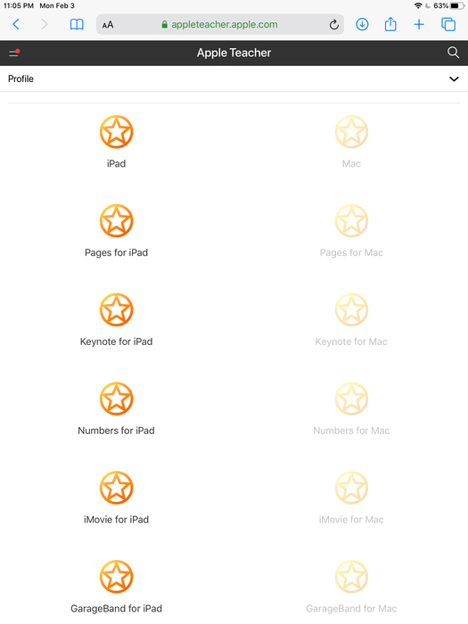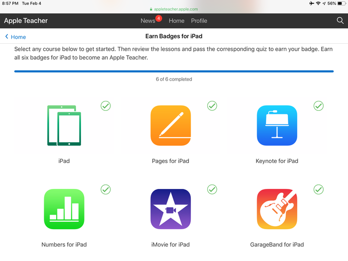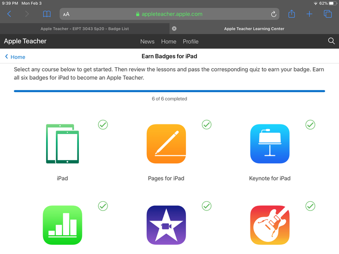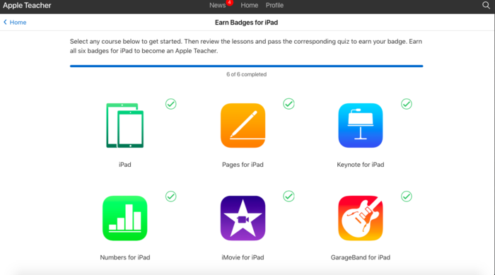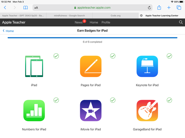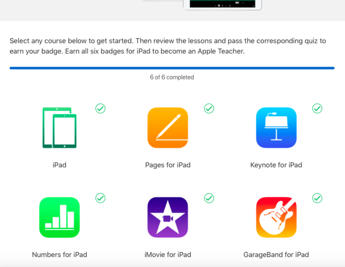 Screen shot confirming you completed all the steps to earn the iPad certification. You may need more than one screen shot.