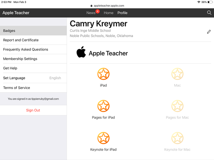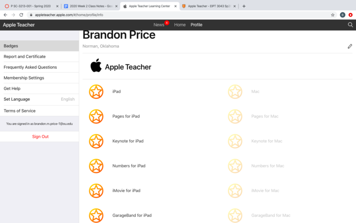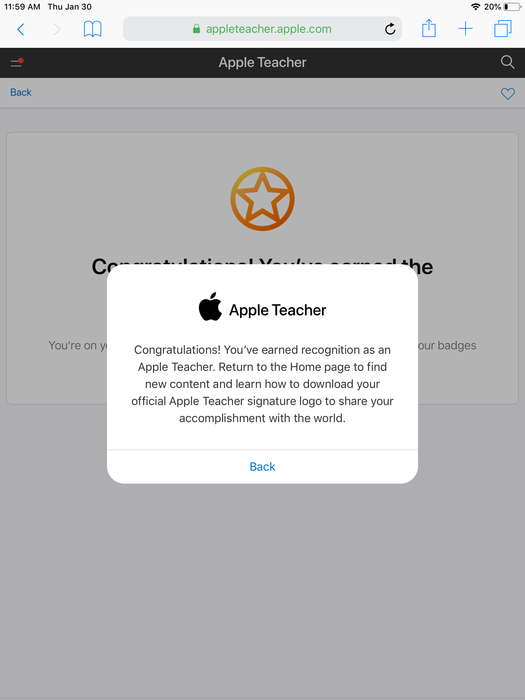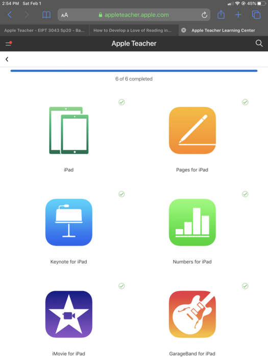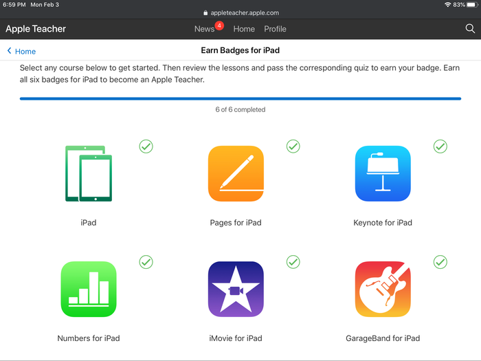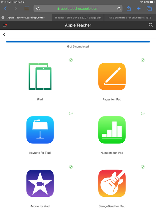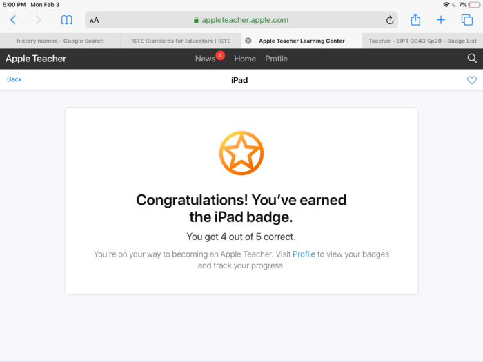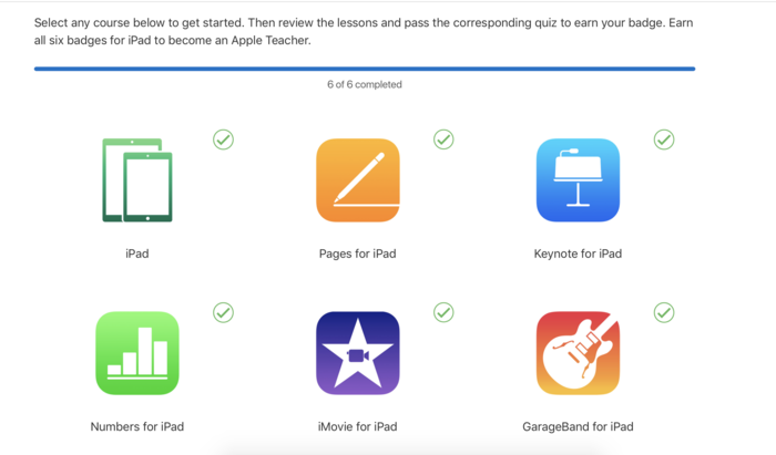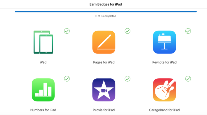Screen shot confirming you completed all the steps to earn the iPad certification. You may need more than one screen shot.