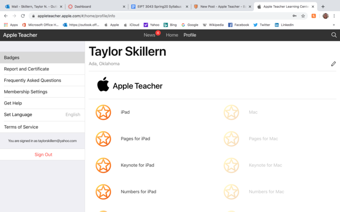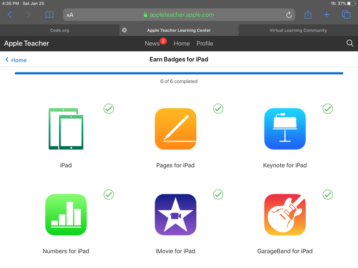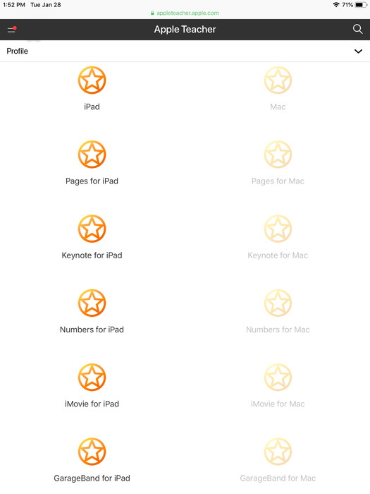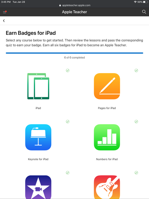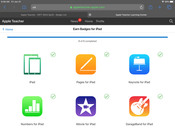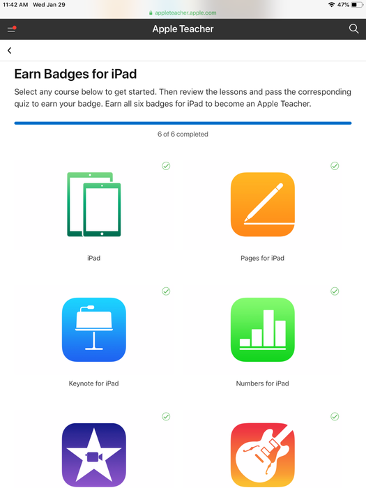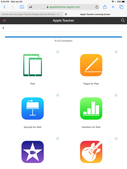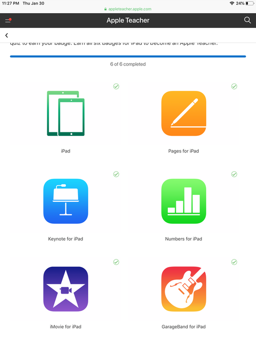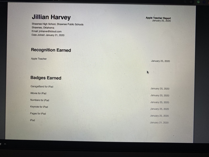 Screen shot confirming you completed all the steps to earn the iPad certification. You may need more than one screen shot.