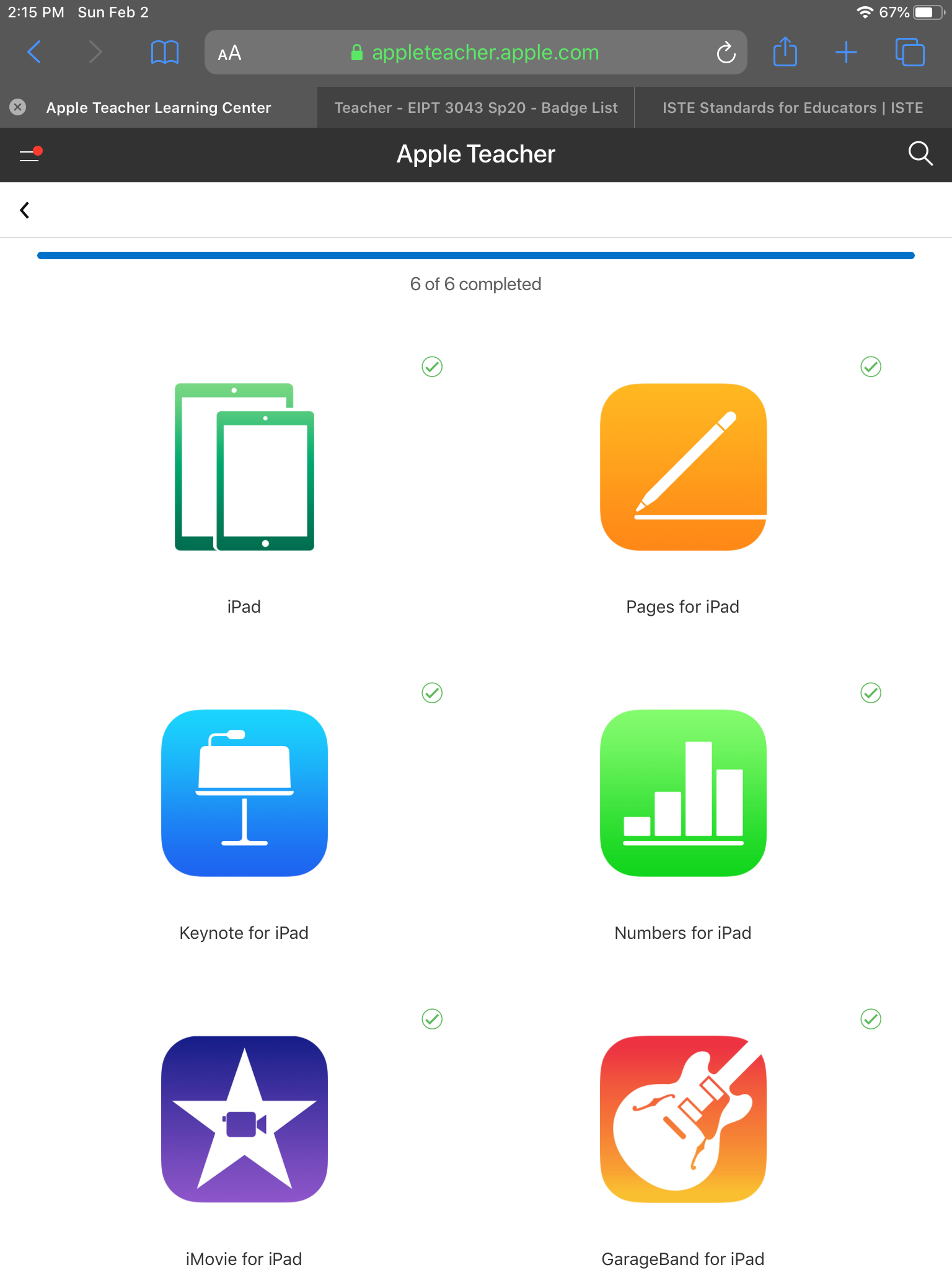 Screen shot the Apple Teacher Badges Earned Window