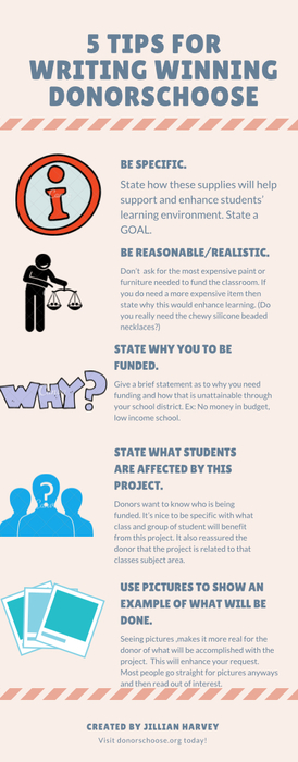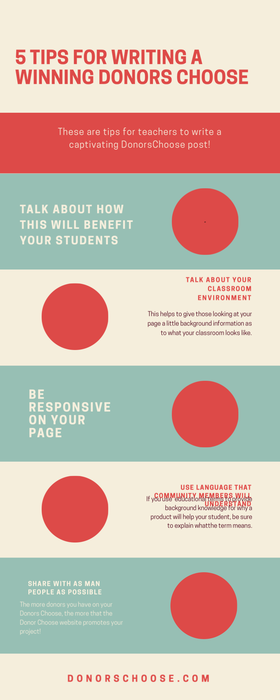 4. Don’t start too big! Ask for something small, but something you know will benefit your students anyway.