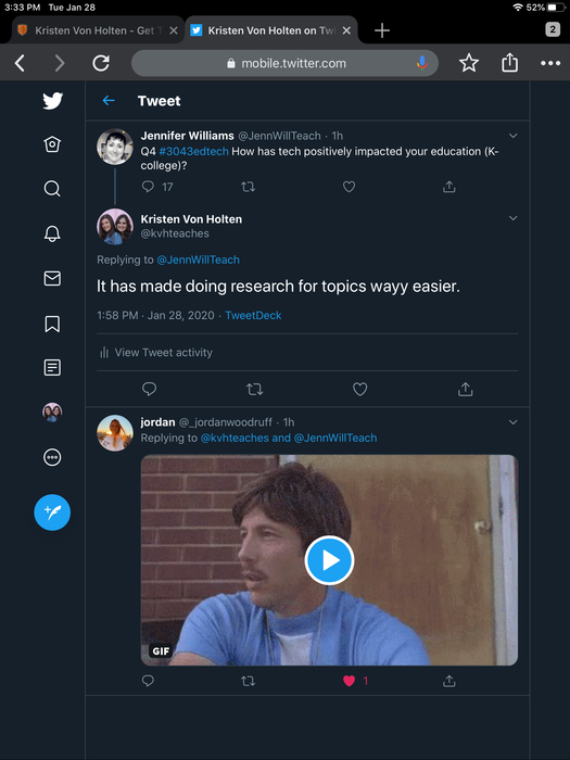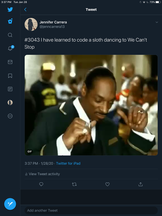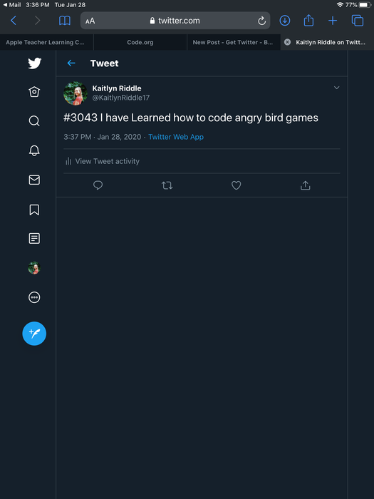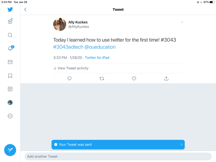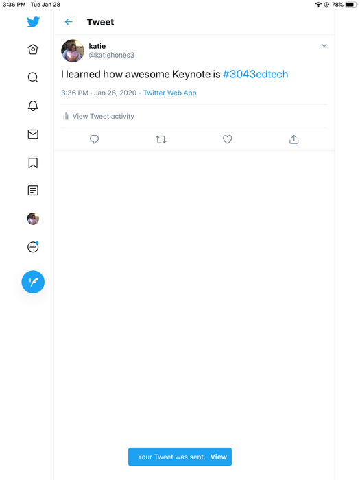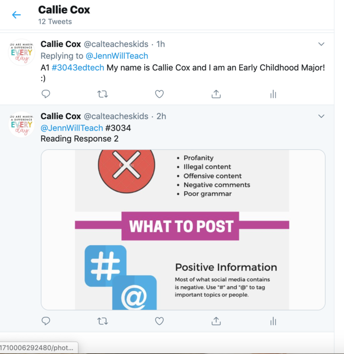 Tweet something technology-related you have learned in this class or another class. Tag #3043. Take a screen shot and upload that here.