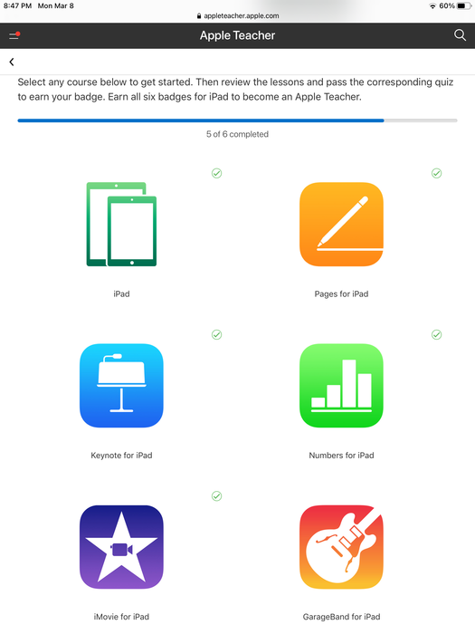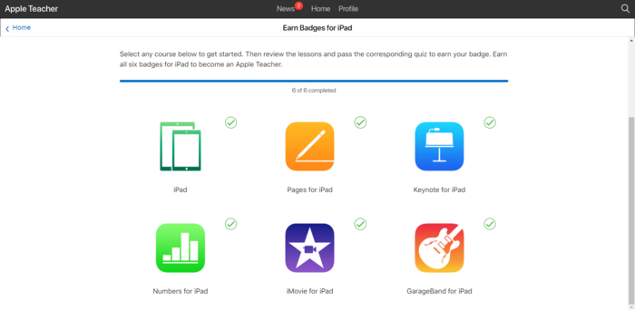 Screen shot confirming you completed all the steps to earn the iPad certification. You may need more than one screen shot.