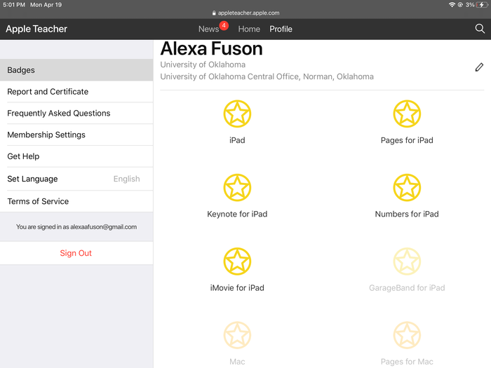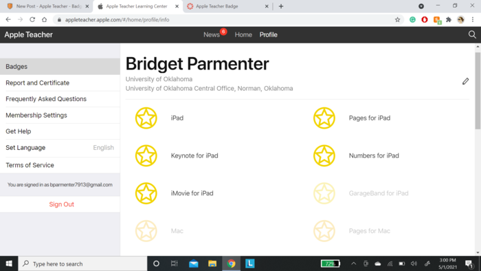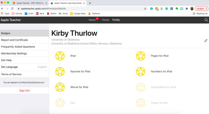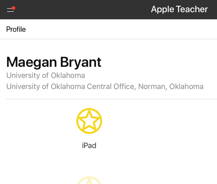 Screen shot the Apple Teacher Badges Earned Window