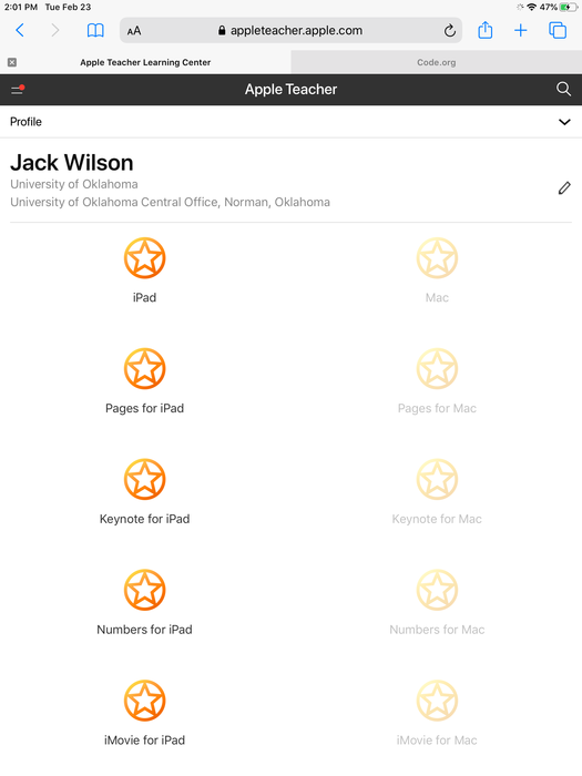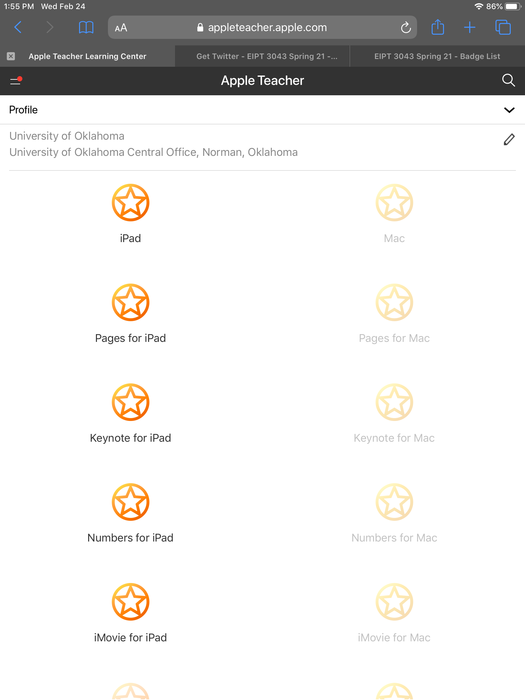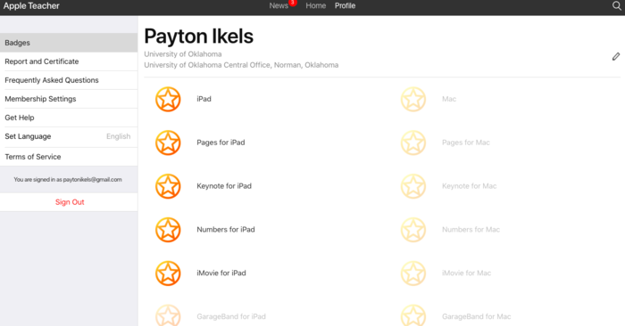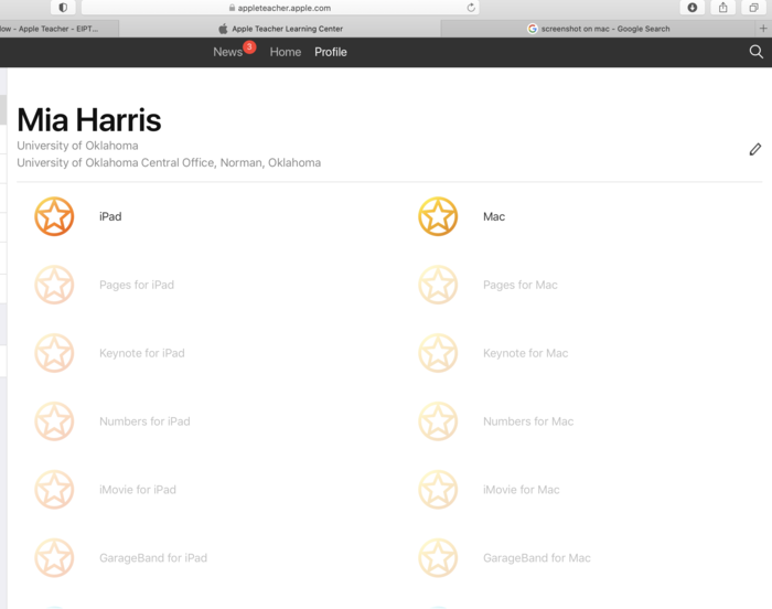 Screen shot confirming you completed all the steps to earn the iPad certification. You may need more than one screen shot.