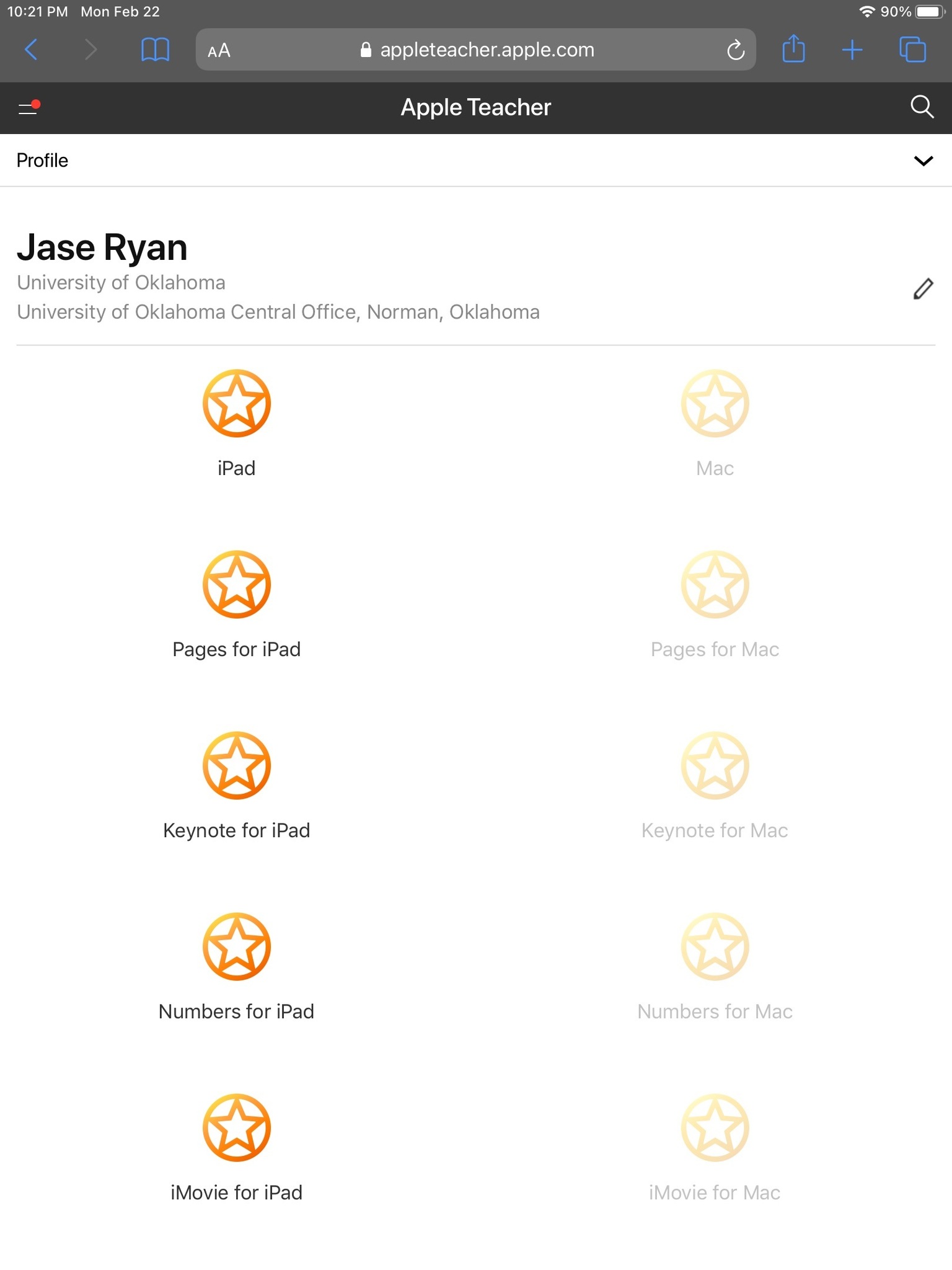 Screen shot the Apple Teacher Badges Earned Window