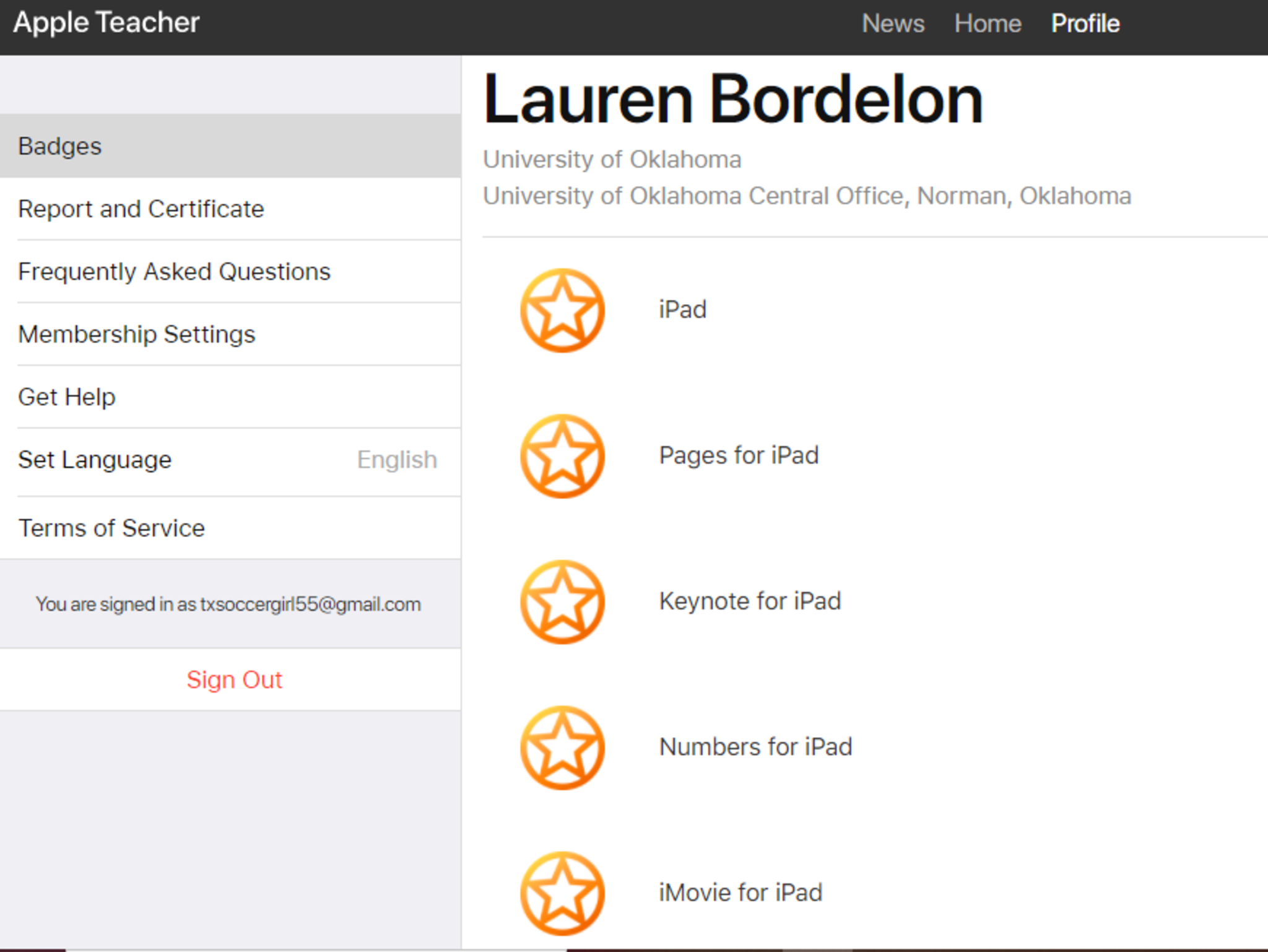 Screen shot the Apple Teacher Badges Earned Window
