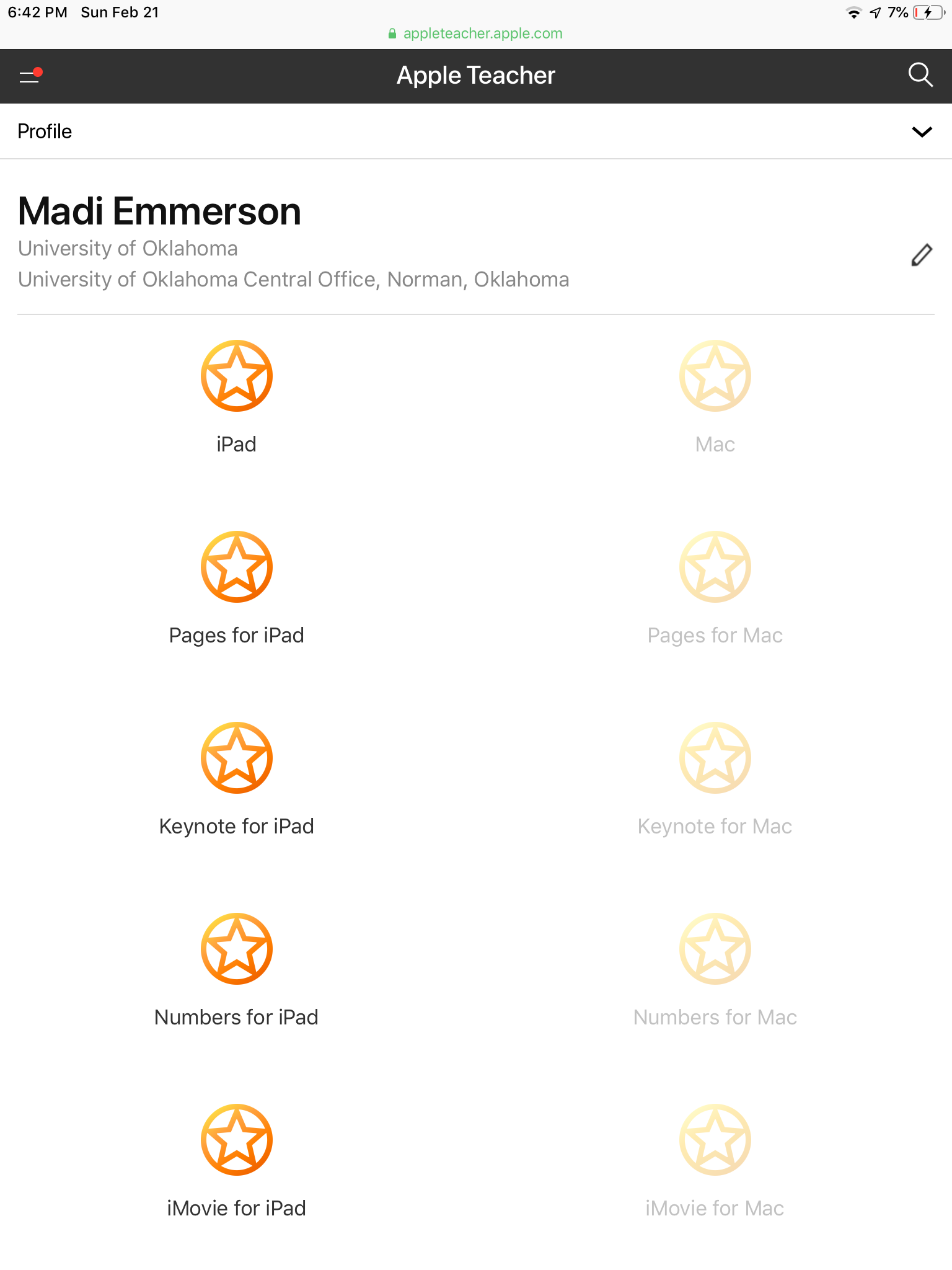 Screen shot the Apple Teacher Badges Earned Window