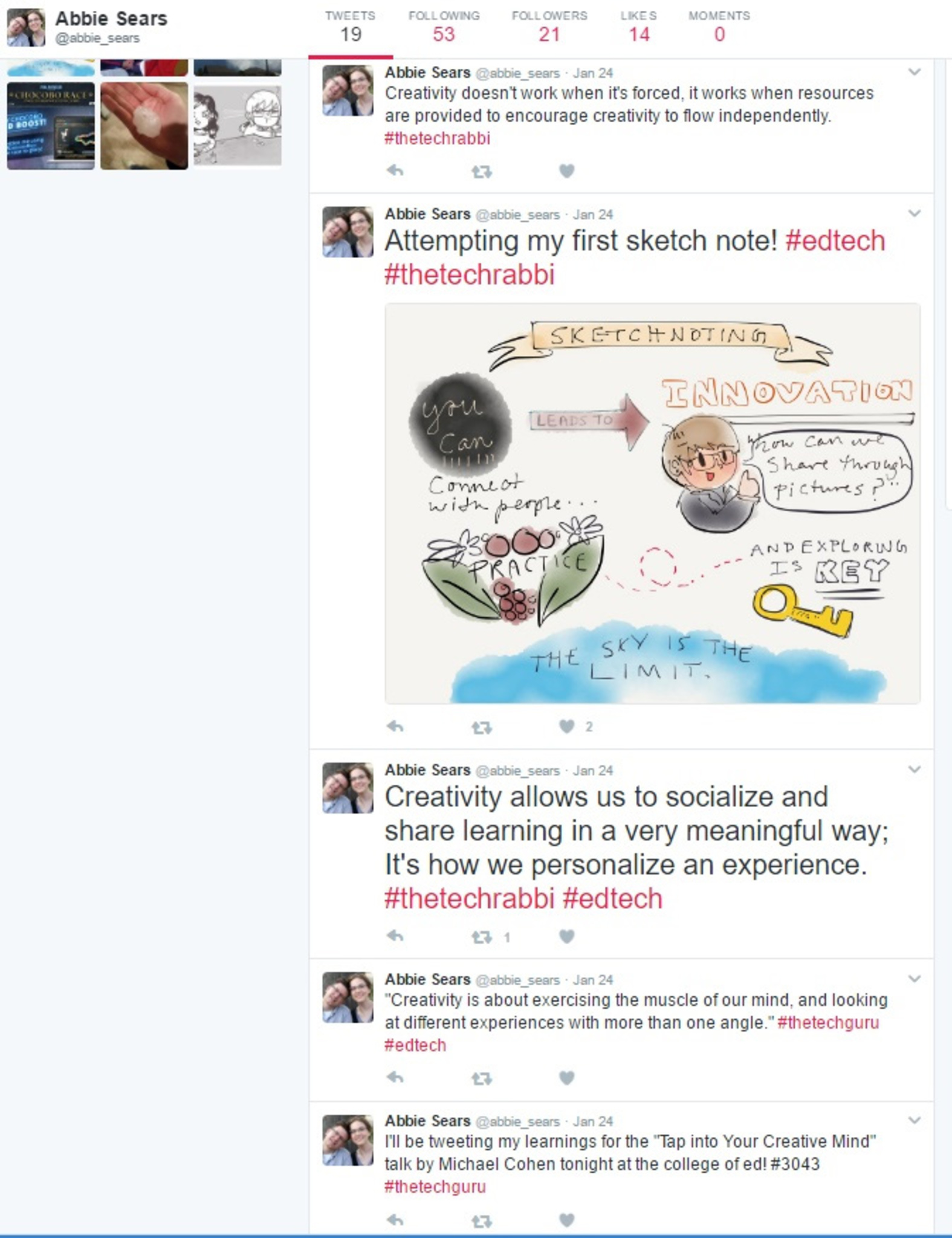 I've included a screenshot of my live tweets during Rabbi Michael Cohen's talk on Creativity on January 24.