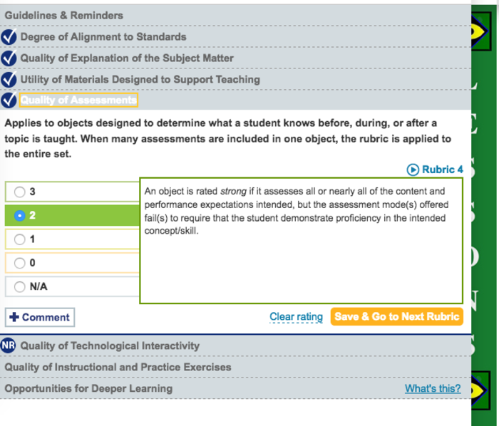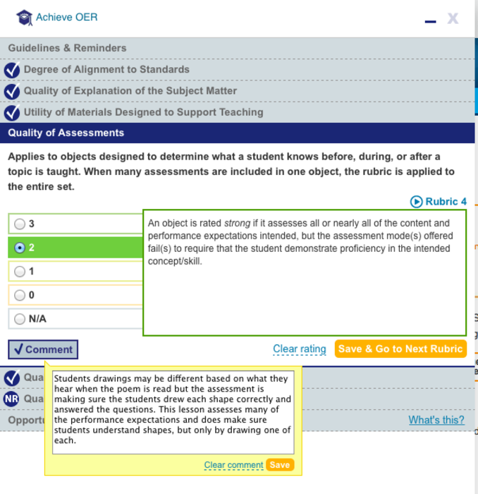 I gave this section a 2 because the assessments that were provided were strong I just wish the lesson provided more options for assessments