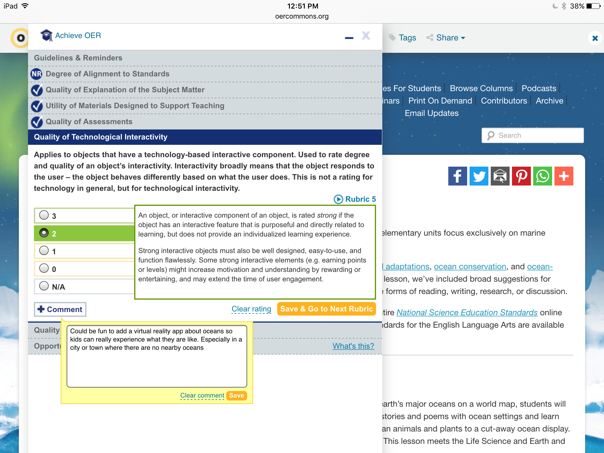 Show your review from OER commons