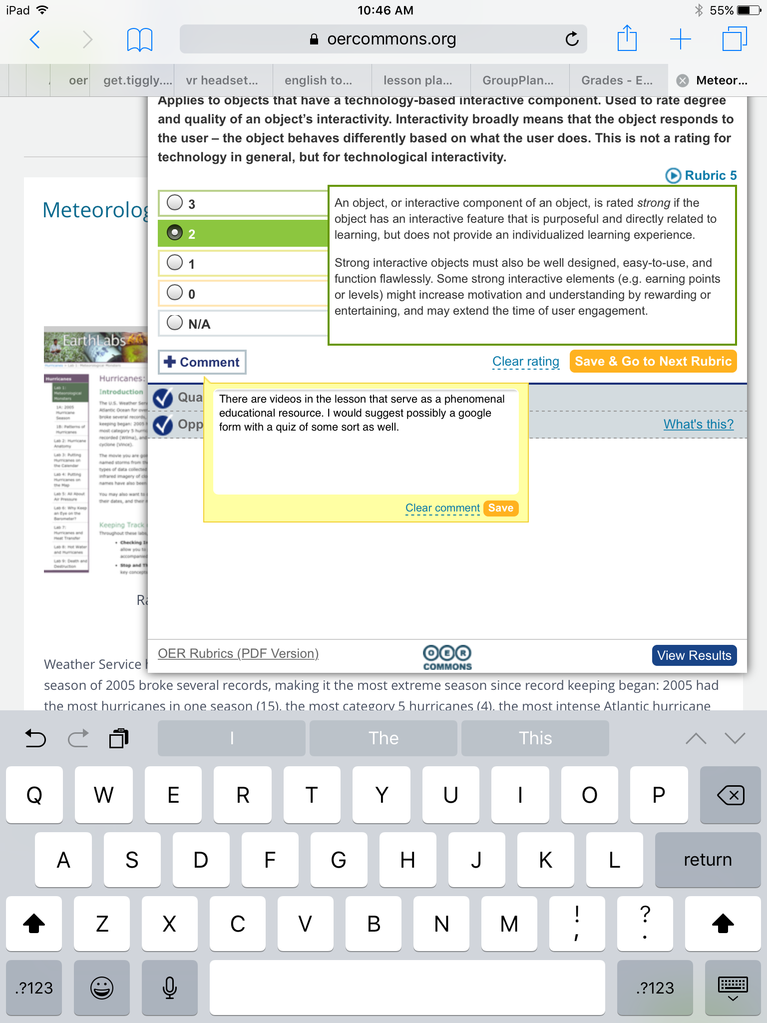 Show your review from OER commons