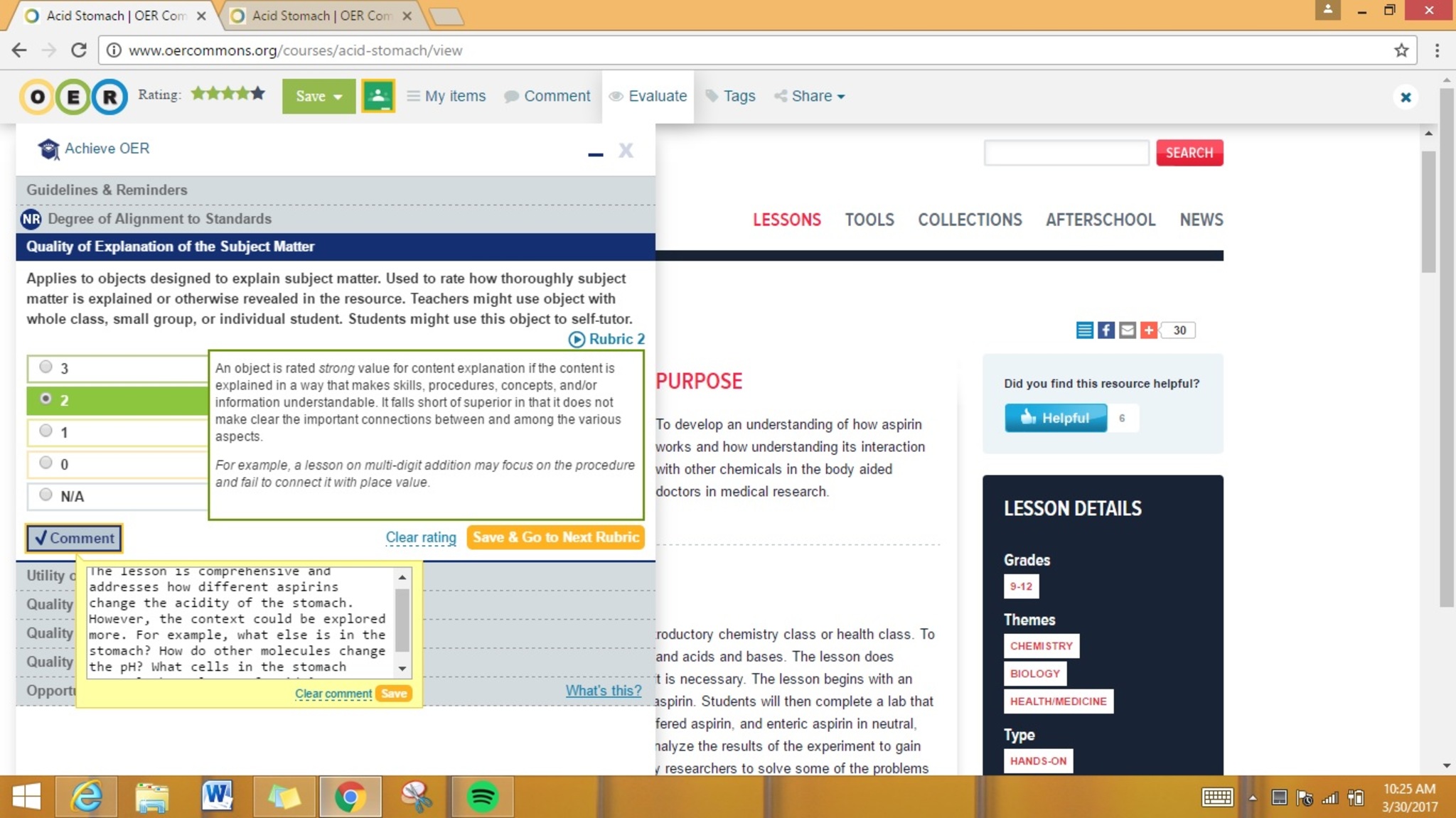 Show your review from OER commons