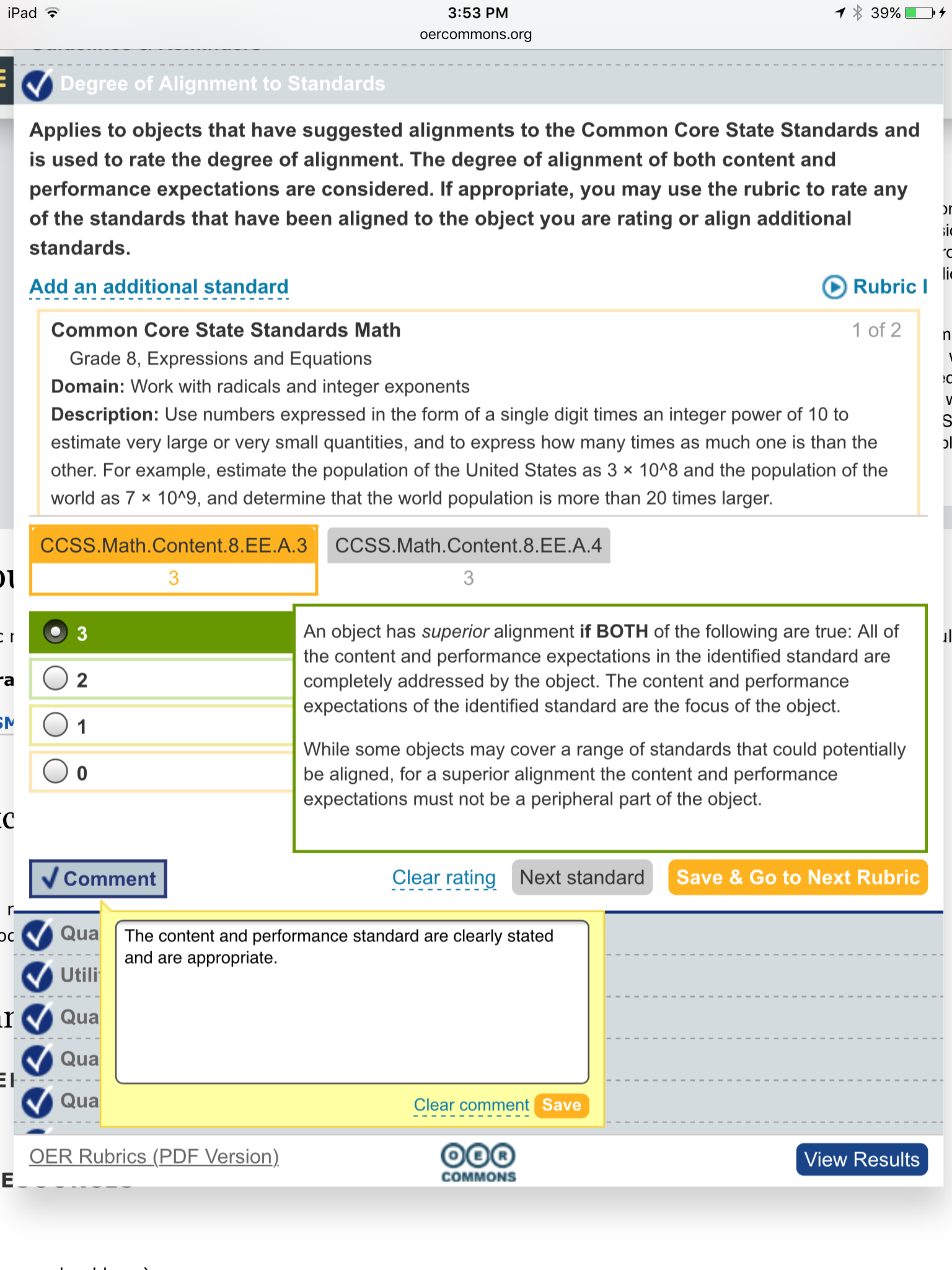 Show your review from OER commons