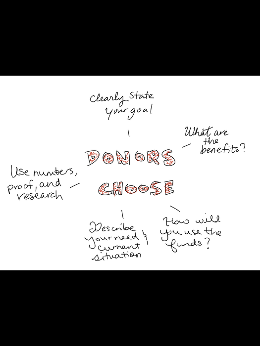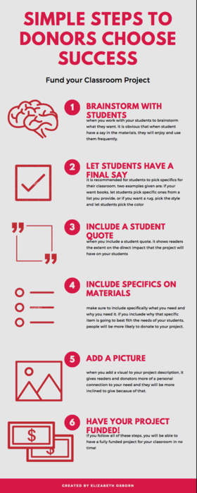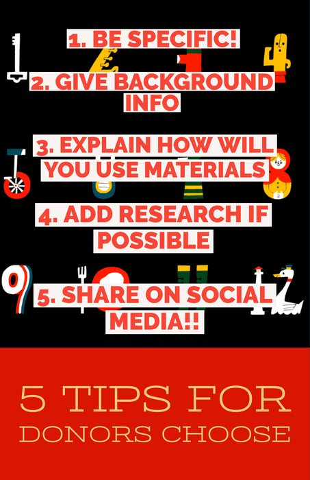 What are 5 tips that you have for writing a winning Donors Choose application based on what they did well and what they did not do well. Create this as an image/infographic use Canva, Adobe Post, or any other tool you prefer to use.