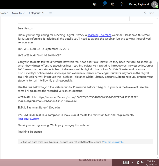 Include a selfie or any confirmation you receive of attendance. This may be optional.