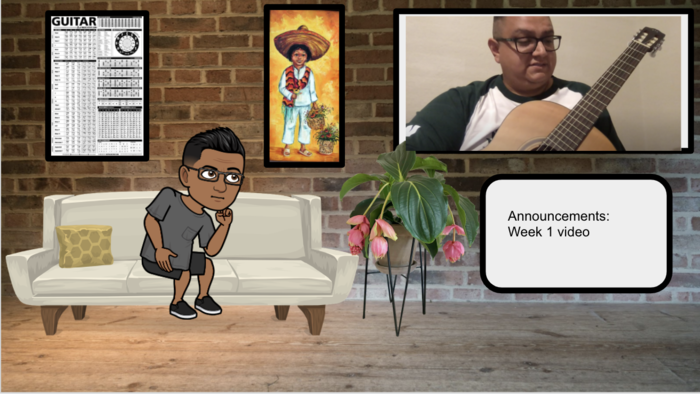 Bitmoji Classroom with my video lesson from distance learning for Mariachi.