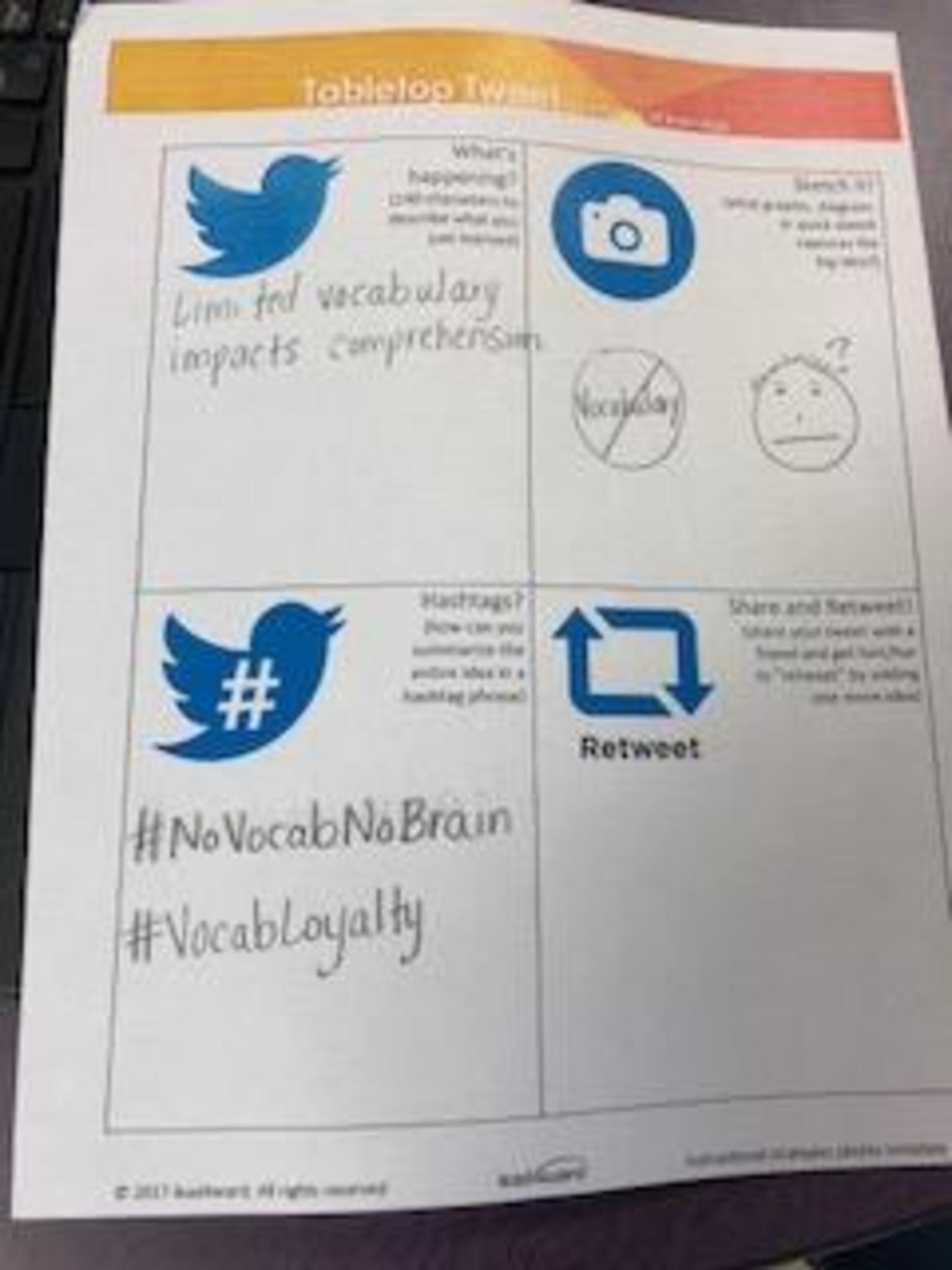 Tabletop tweet was used during a PLC with each grade level. This allowed us to capture individuals' thinking.