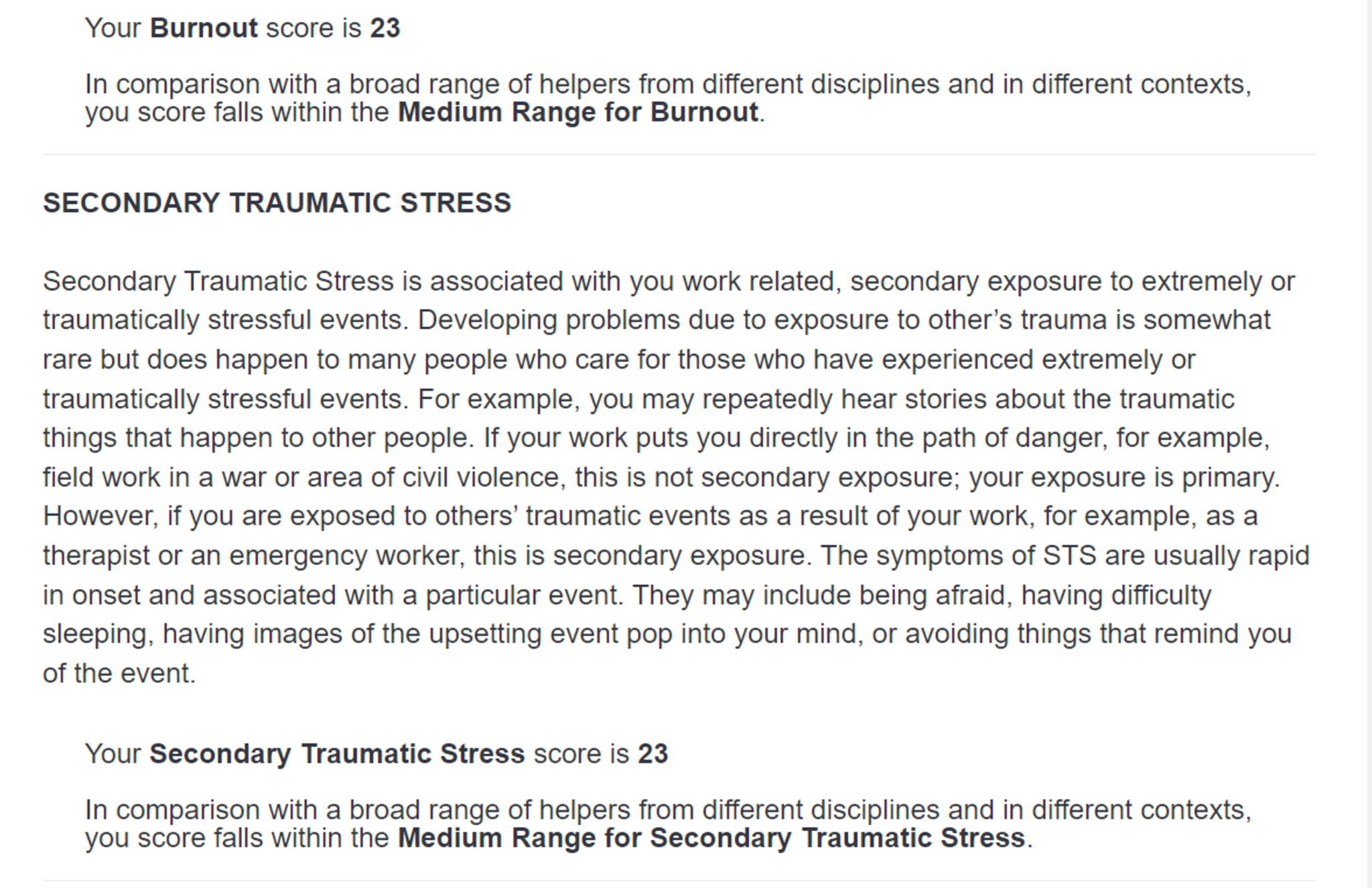 I was surprised that I scored in the medium range for burn out. I feel like I do a good job of separating work & leisure. I do work hard!