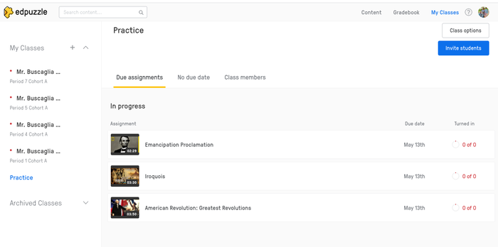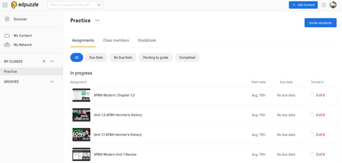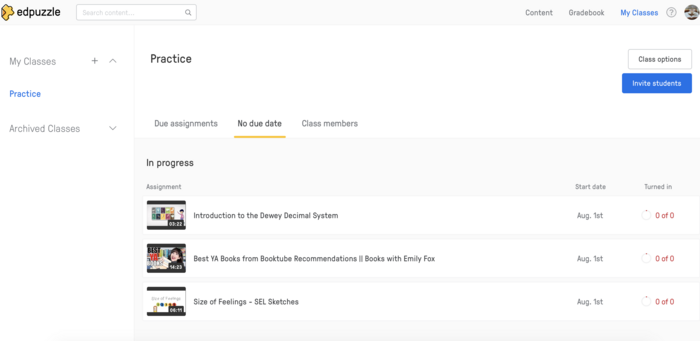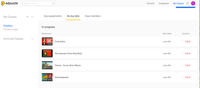 - Copy the EdPuzzles to your Content and assign them to your Practice class.