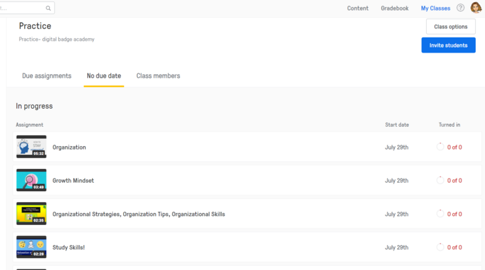 Take a screenshot of your class, with the assigned videos, and upload the image.