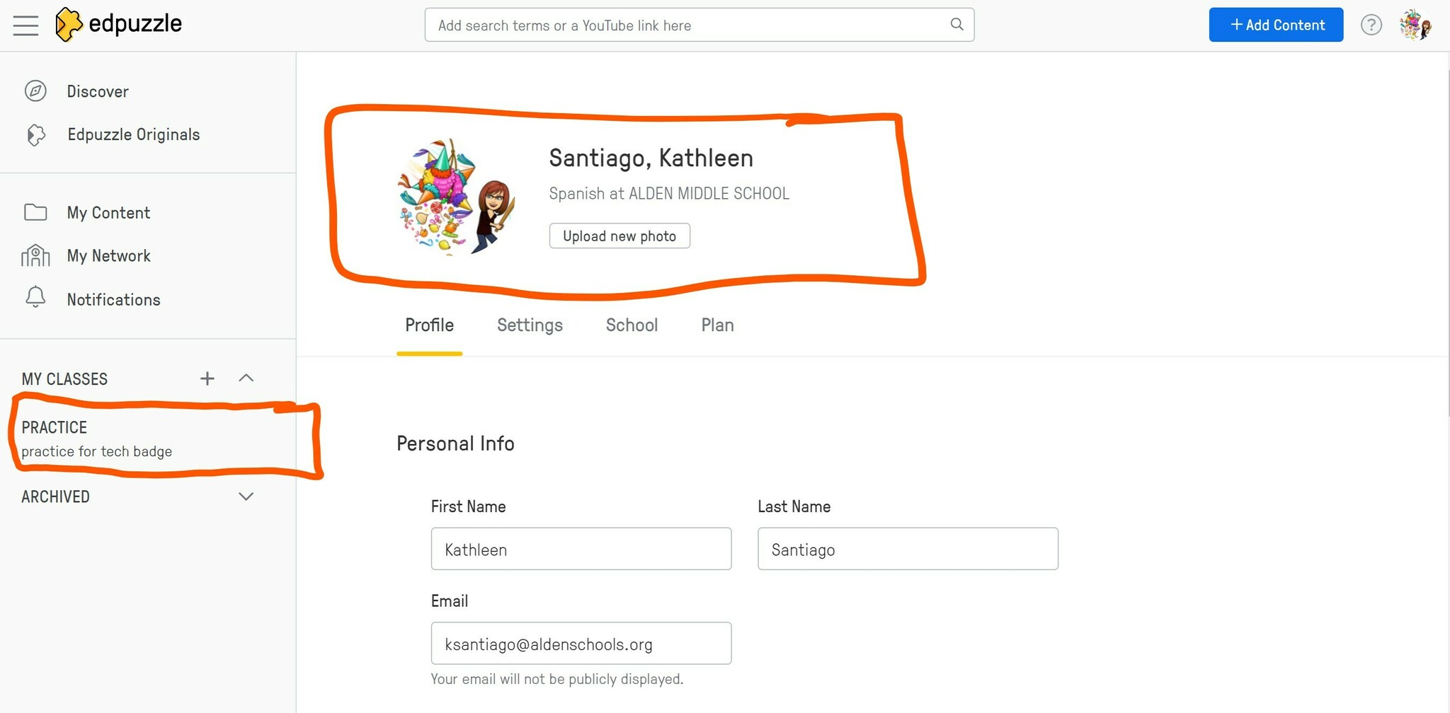 edpuzzle account with practice class