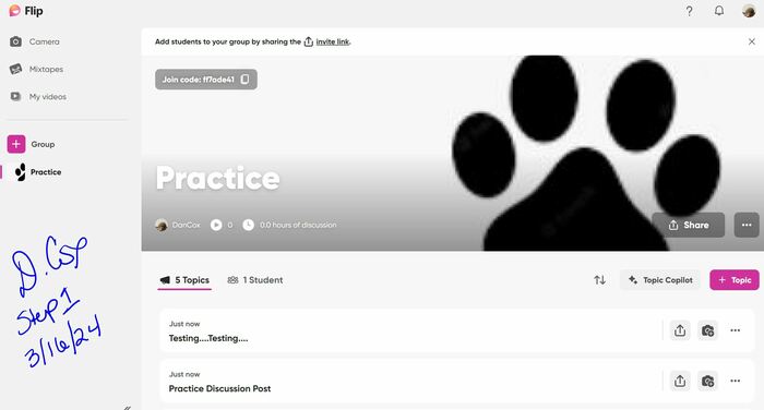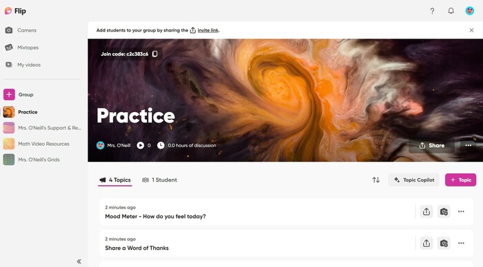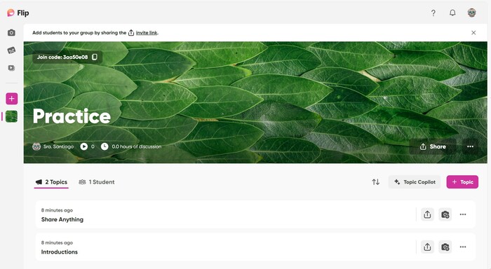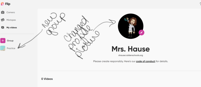 Here's my Flip. I could not find a way to add a profile photo. I am using a MS Surface. We are not a Google Classroom school.