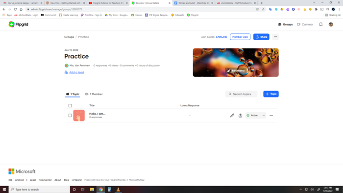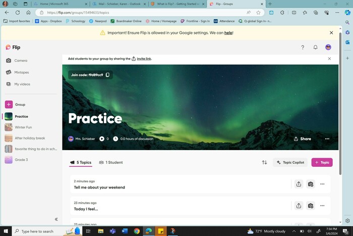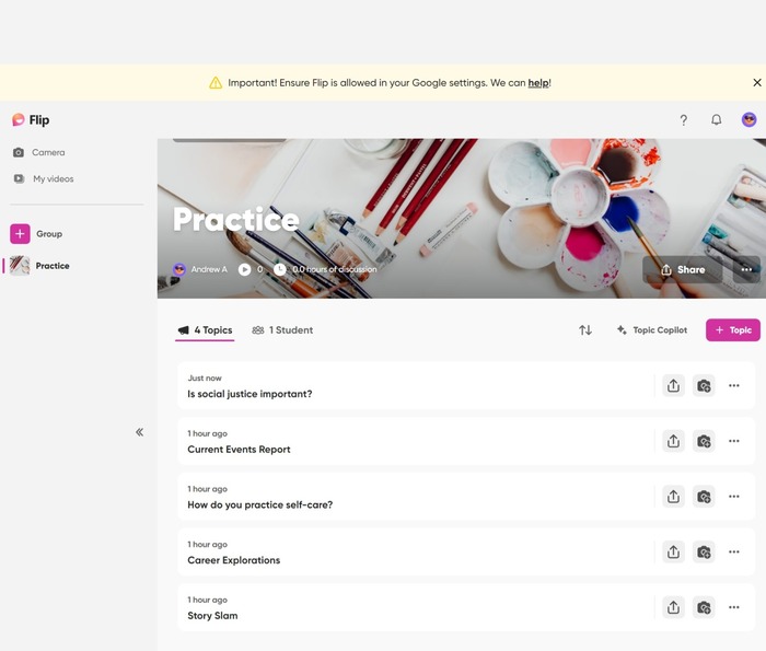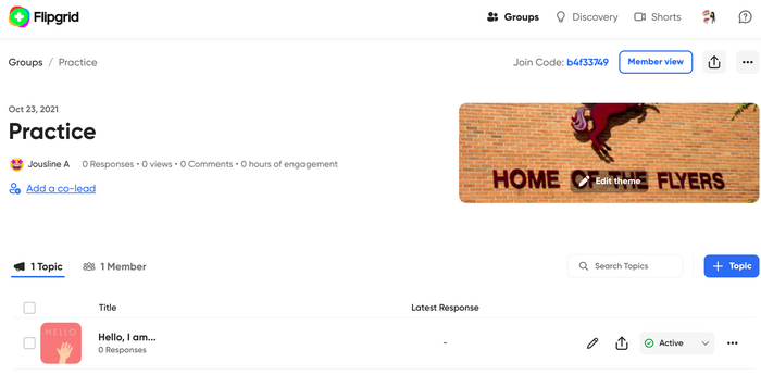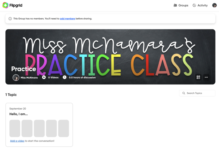 - Create your first group. Remember, GROUPS are like you classes. Call it "Practice". You can delete it later. In the future, groups can be for a specific class, subject, or any other group you wish to use Flip with.