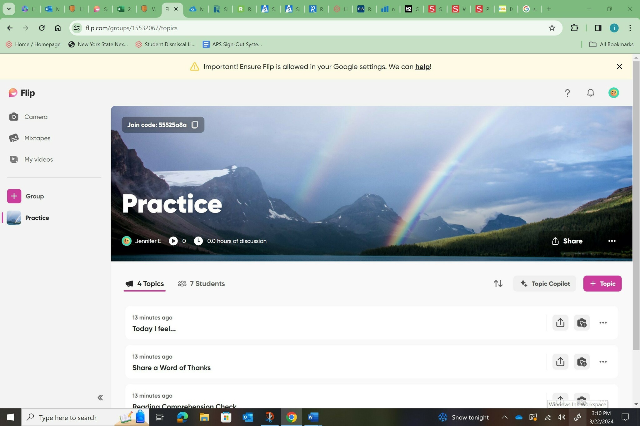 Here's my Flip. I could not find a way to add a profile photo. I am using a MS Surface. We are not a Google Classroom school.