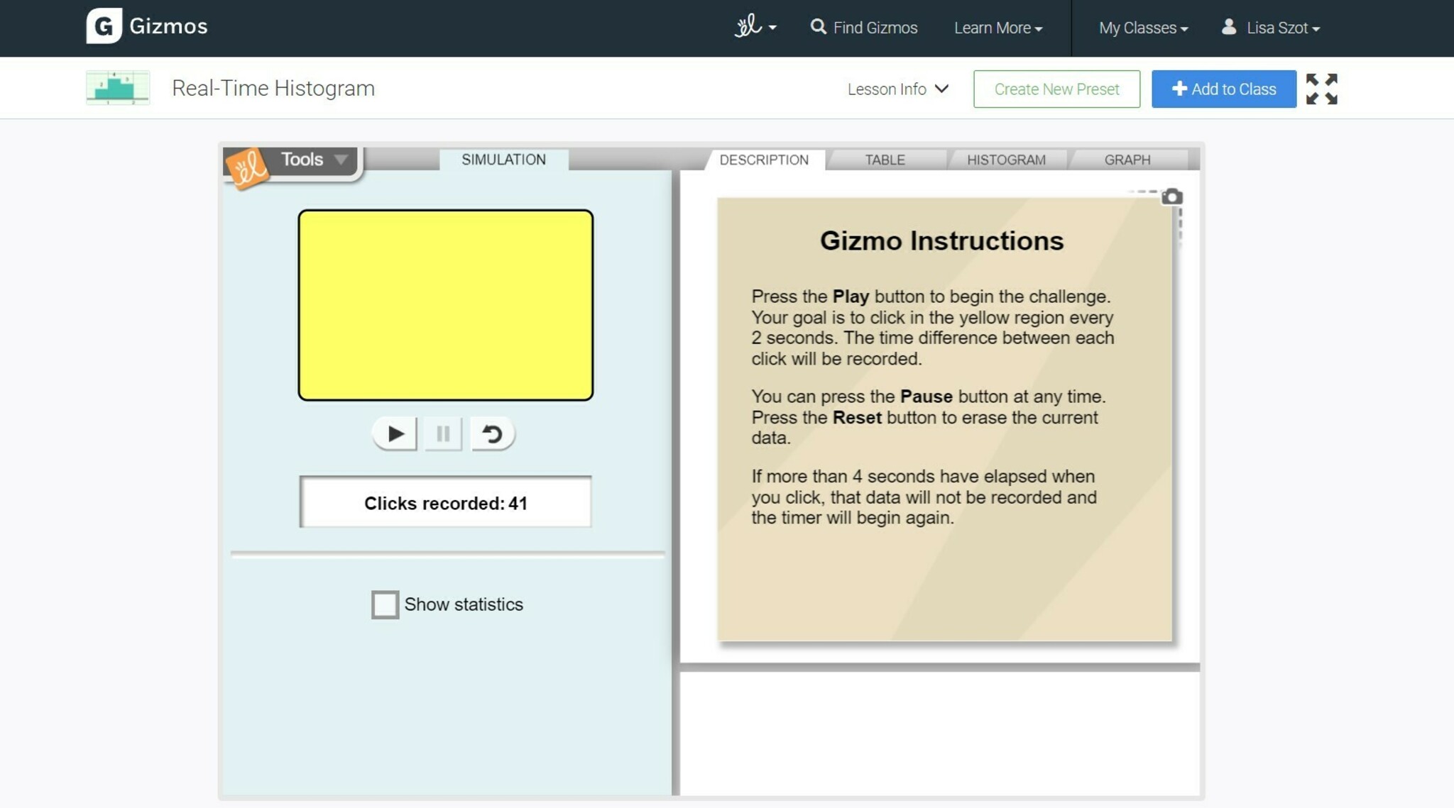 Real Time Histogram. I had to click every two seconds and it translated the data into a histogram.