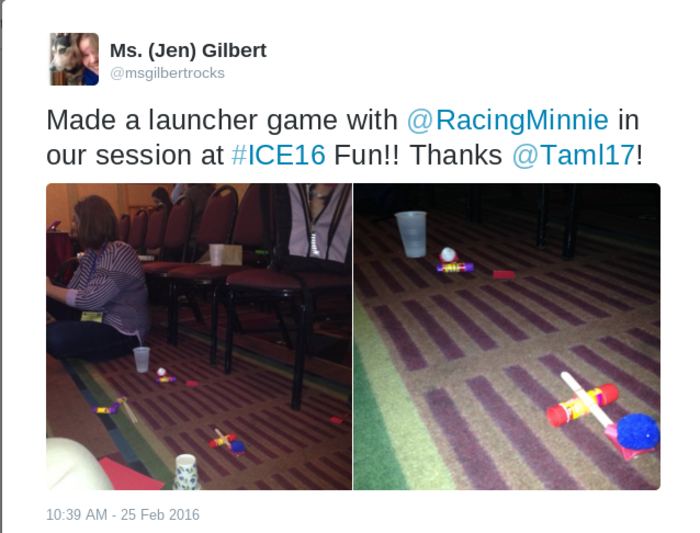 Had a fantastic time creating a launcher game with a partner in a "make it" session. Basic materials (provided) 15 mins to create a game.