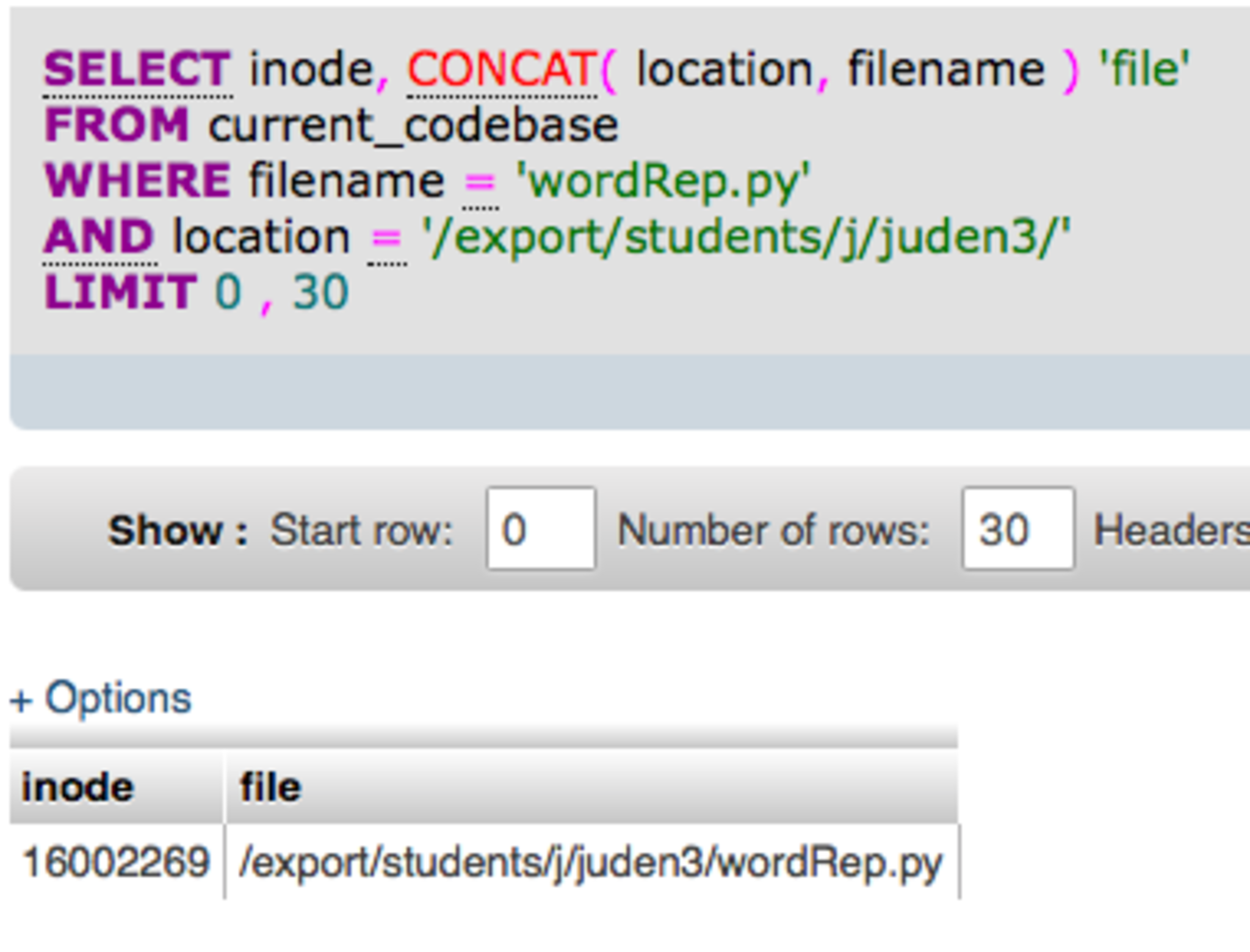 Narrowed down to a single file with WHERE and AND again.