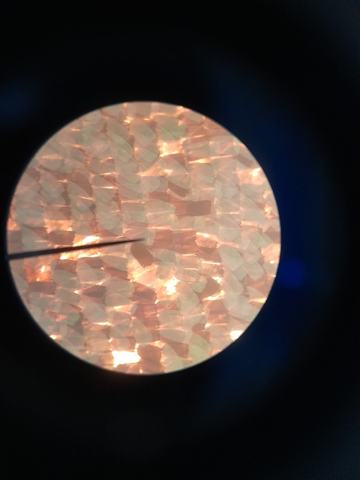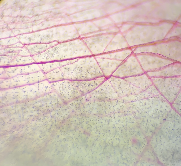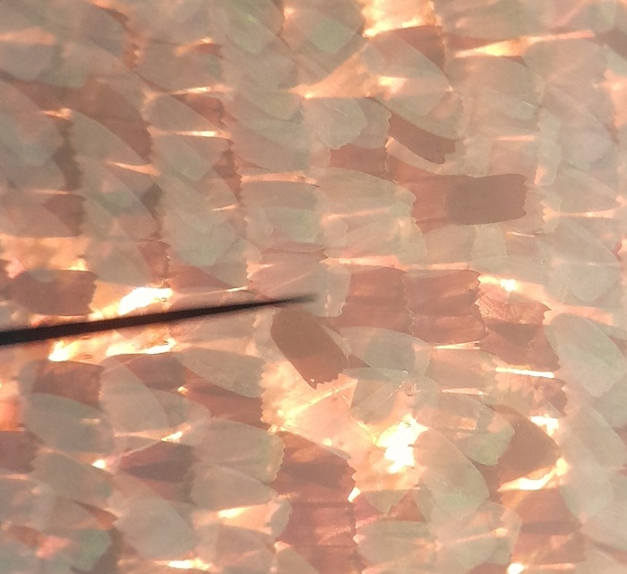 Fish scale ganoid wm- loose connective tissue- light microscope 10x